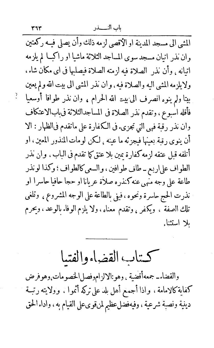 والقضاء - جمعة أقضية وهو: الإلزام وفصل الخصومات وهو فرض كفاية كالإمامة وإذا أجمع أهل بلد على تركه أثموا وولايته رتبة دينية ونصبة شرعية وفيه فضل عظيم لمن قوي على القيام به وأداء الحق