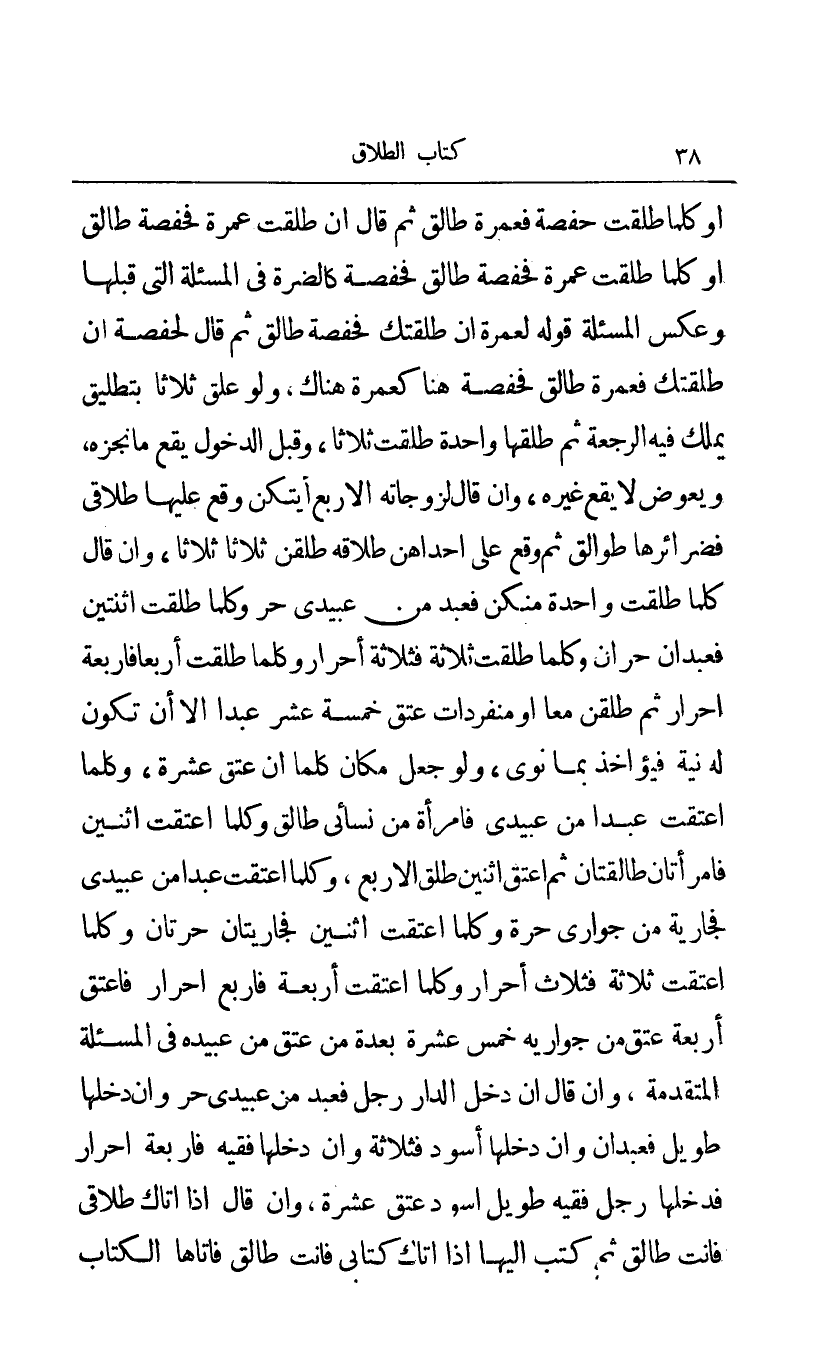 أو كلما طلقت حفصة فعمرة طالق ثم قال إن طلقت عمرة فحفصة طالق أو كلما طلقت عمرة فحفصة طالق فحفصة كالضرة في المسئلة التي قبلها وعكس المسئلة قوله لعمرة إن طلقتك فحفصة طالق ثم قال لحفصة إن طلقتك فعمرة طالق فحفصة هنا كعمرة هناك ولو علق ثلاثا بتطليق يملك فيه الرجعة ثم طلقها واحدة طلقت ثلاثا وقبل الدخول يقع ما نجزه ويعوض لا يقع غيره وإن قال لزوجاته الأربع أيتكن وقع عليها طلاقي فضرائرها طوالق ثم وقع على إحداهن طلاقه طلقن ثلاثا ثلاثا وإن قال كلما طلقت واحدة منكن فعبد من عبيدي حر وكلما طلقت اثنتين فعبدان حران وكلما طلقت ثلاثة فثلاثة أحرار وكلما طلقت أربعا فأربعة أحرار ثم طلقن معا أو منفردات عتق خمسة عشر عبدا إلا أن تكون له نية فيؤاخذ بما نوى ولو جعل مكان كلما إن عتق عشرة وكلما أعتقت عبدا من عبيدي فامرأة من نسائي طالق وكلما أعتقت اثنين فامرأتان طالقتان ثم أعتق اثنين طلق الأربع وكلما أعتقت عبدا من عبيدي فجارية من جواري حرة وكلما أعتقت اثنين فجاريتان حرتان وكلما أعتقت ثلاثة فثلاث أحرار وكلما أعتقت أربعة فأربع أحرار فأعتق أربعة عتق من جواريه خمس عشرة بعدة من عتق من عبيده في المسئلة المتقدمة وإن قال إن دخل الدار رجل فعبد من عبيدي حر وإن دخلها طويل فعبدان وإن دخلها أسود فثلاثة وإن دخلها فقيه فأربعة أحرار فدخلها رجل فقيه طويل أسود عتق عشرة وإن قال إذا أتاك طلاقي فأنت طالق ثم كتب إليها إذا أتاك كتابي فأنت طالق فأتاها الكتاب