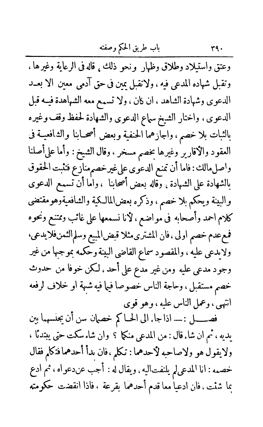 ثم إن شاء قال: من المدعي منكما؟ وإن شاء سكت حتى يبتدئا ولا يقول هو ولا صاحبه لأحدهما: تكلم فإن بدأ أحدهما فتكلم فقال خصمه: أنا المدعي لم يلتفت إليه ويقال له: أجب عن دعواه ثم ادع بما شئت فإن ادعيا معا قدم أحدهما بقرعة فإذا انقضت حكومته
