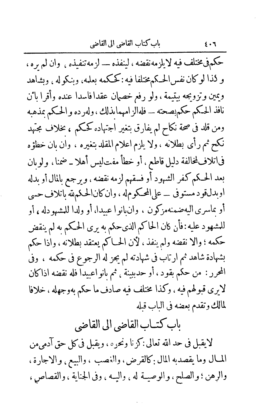 حكم في مختلف فيه لا يلزمه نقضه لينفذه - لزمه تنفيذه وإن لم يره وكذا لو كان نفس الحكم مختلفا فيه: كحكمه بعلمه وبنكوله وبشاهد ويمين وتزويجه بيتيمة ولو رفع خصمان عقدا فاسدا عنده وأقرا بأن نافذ الحكم حكم بصحته - فله إلزامهما بذلك وله رده والحكم بمذهبه ومن قلد في صحة نكاح لم يفارق بتغير اجتهاده كحكم بخلاف مجتهد نكح ثم رأى بطلانه ولا يلزم إعلام المقلد بتغيره وإن بان خطؤه في إتلاف لمخالفة دليل قاطع أو خطأ مفت ليس أهلا - ضمنا ولو بان بعد الحكم كفر الشهود أو فسقهم لزمه نقضه ويرجع بالمال أو بدله أو بدل قود مستوفى - على المحكوم له وإن كان الحكم لله بإتلاف حسي أو بما سرى إليه ضمنه مزكون وإن بانوا عبيدا أو ولدا للمشهود له أو للمشهود عليه: فإن كان الحاكم الذي حكم به يرى الحكم به لم ينقض حكمه وإلا نقضه ولم ينفذ لأن الحاكم يعتقد بطلانه وإذا حكم بشهادة شاهد ثم ارتاب في شهادته لم يجز له الرجوع في حكمه وفي المحرر: من حكم بقود أو حد بينة ثم بانوا عبيدا فله نقضه إذا كان لا يرى قبولهم فيه وكذا مختلف فيه صادق ما حكم به وجهله خلافا لمالك وتقدم بعضه في الباب قبله.