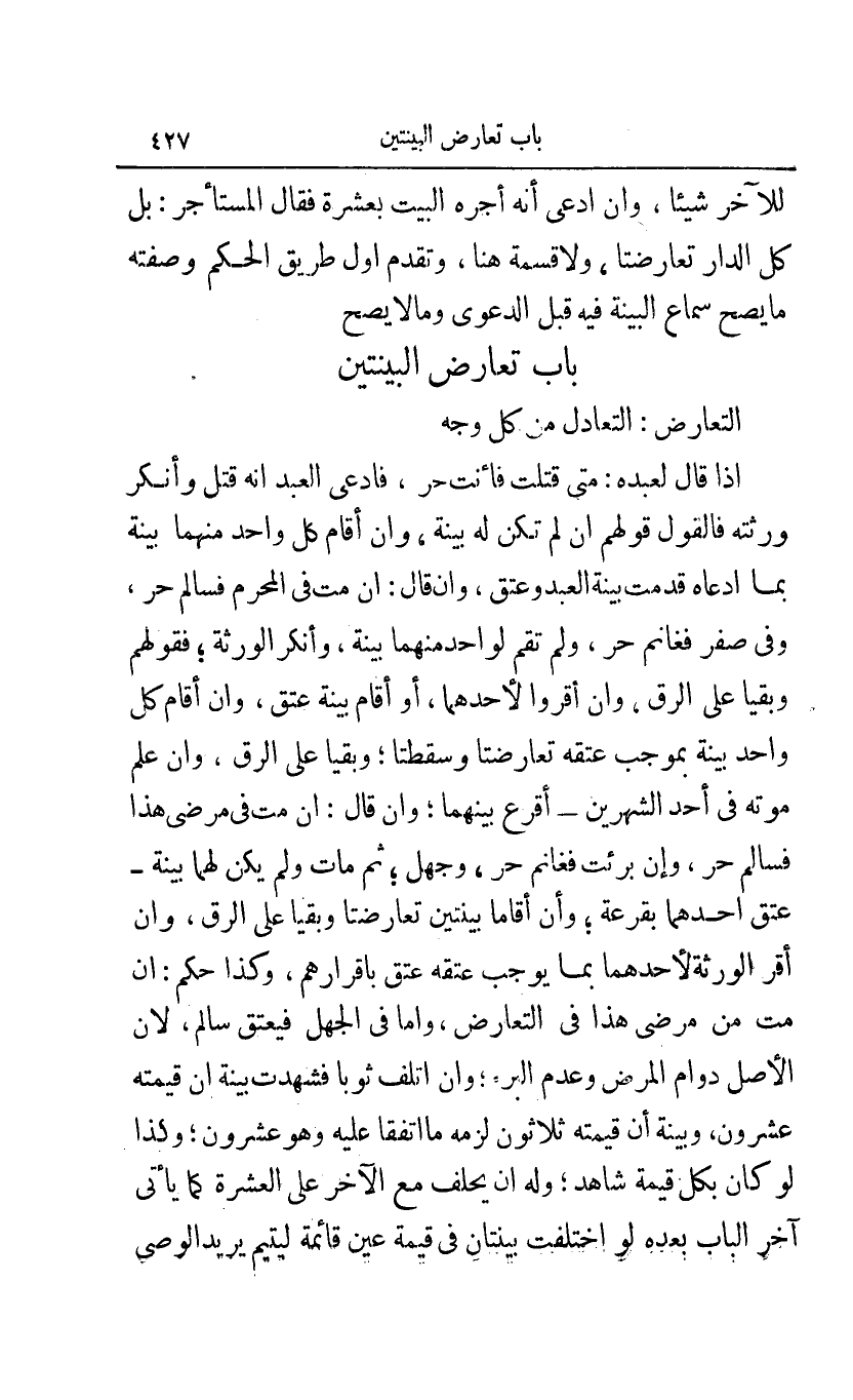 للآخر شيئا وإن ادعى أنه أجره البيت بعشرة فقال المستأجر: بل كل الدار تعارضتا ولا قسمة هنا وتقدم أول طريق الحكم وصفته ما يصح سماع البينة فيه قبل الدعوى وما لا يصح.