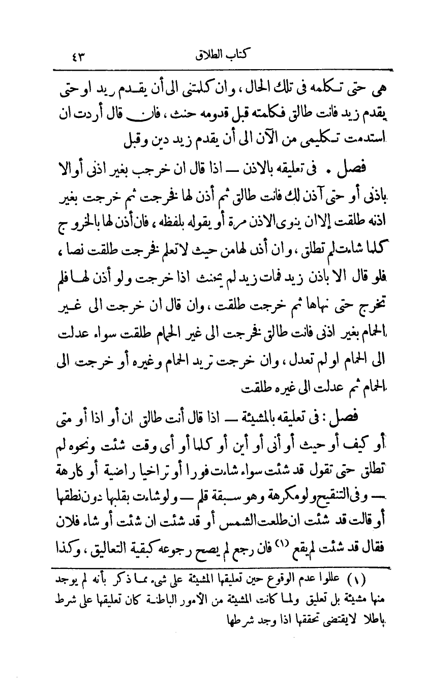 1 عللوا عدم الوقوع حين تعليقها المشيئة على شيء مما ذكر بأنه لم يوجد منها مشيئة بل تعليق ولما كانت المشيئة من الأمور الباطنة كان تعليقها على شرط باطلا لا يقتضي تحققها إذا وجد شرطها.