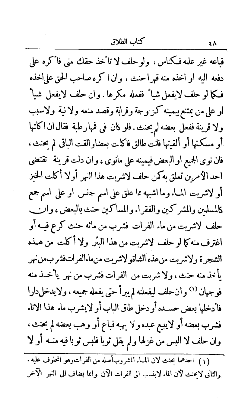 1 أحدهما يحنث لأن الماء المشروب أصله من الفرات وهو المحلوف عليه. والثاني لا يحنث لأن الماء لا ينسب إلى الفرات الآن وإنما يضاف إلى النهر الآخر.