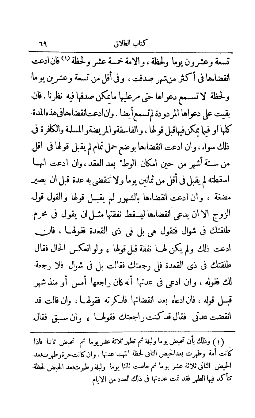 والأمة خمسة عشر ولحظة1 فإن ادعت انقضاءها في أكثر من شهر صدقت وفي أقل من تسعة وعشرين يوما ولحظة لا تسمع دعواها حتى مر عليها ما يمكن صدقها فيه نظرنا فإن بقيت على دعواها المردودة لم تسمع أيضا وإن ادعت انقضاءها في هذه المدة كلها أو فيما يمكن فيها قبل قولها والفاسقة والمريضة والمسلمة والكافرة في ذلك سواء وإن ادعت انقضاءها بوضع حمل تمام لم يقبل قولها في أقل من ستة أشهر من حين إمكان الوطء بعد العقد وإن ادعت أنها أسقطته لم يقبل في أقل من ثمانين يوما ولا تنقضي به عدة قبل أن يصير مضغة وإن ادعت انقضاءها بالشهور لم يقبل قولها والقول قول الزوج إلا أن يدعي انقضاءها ليسقط نفقتها مثل أن يقول في محرم طلقتك في شوال فتقول هي بل في ذي القعدة فقولها فإن ادعت ذلك ولم يكن لها نفقة قبل قولها ولو انعكس الحال فقال طلقتك في ذي القعدة فلى رجعتك فقالت بل في شوال فلا رجعة لك فقوله وإن ادعى في عدتها أنه كان راجعها أمس أو منذ شهر قبل قوله فإن ادعاه بعد انقضائها فأنكته فقولها وإن قالت قد انقضت عدتي فقال قد كنت راجعتك فقولها وإن سبق فقال