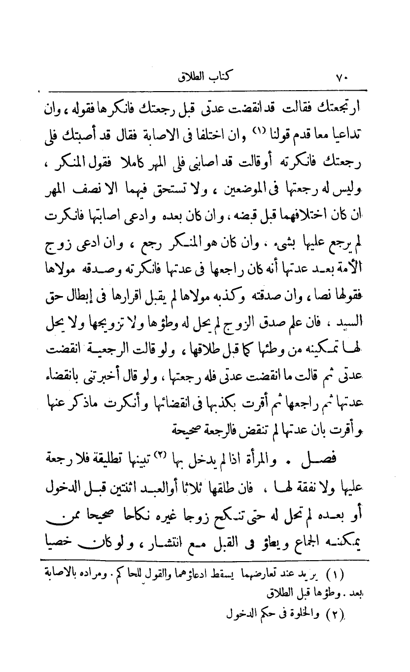فصل. والمرأة إذا لم يدخل بها2 تبينها تطليقة فلا رجعة عليها ولا نفقة لها