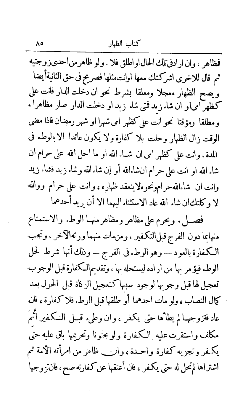 فصل. ويحرم علي مظاهر ومظاهر منها الوطء والاستمتاع منها بما دون الفرج قبل التكفير