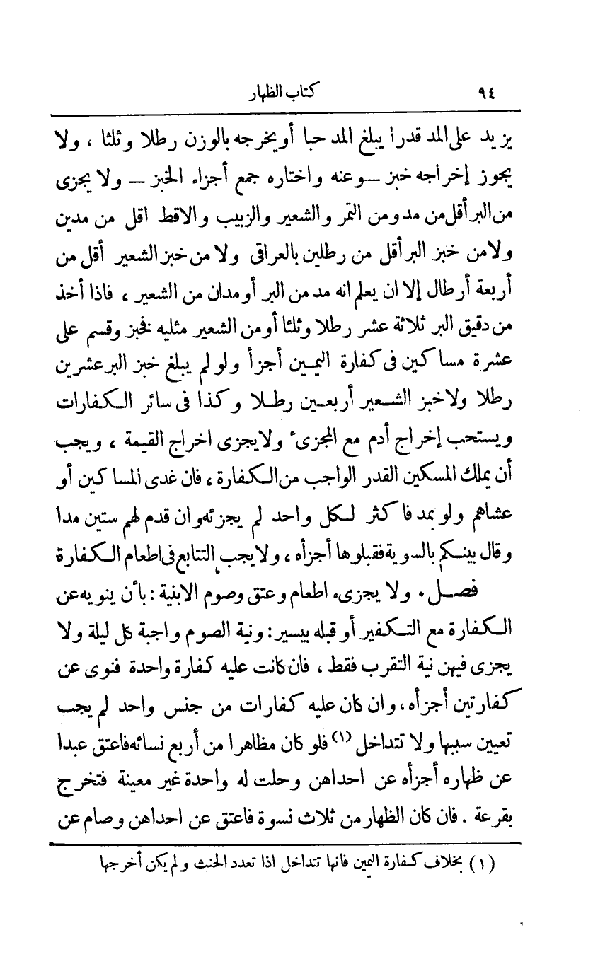 بأن ينويه عن الكفارة مع التكفير أو قبله بيسير: ونية الصوم واجبة كل ليلة ولا يجزى فيهن نية التقرب فقط فإن كانت عليه كفارة واحدة فنوى عن كفارتين أجزأه وإن كان عليه كفارات من جنس واحد لم يجب تعيين سببها ولا تتداخل1 فلو كان مظاهرا من أربع نسائه فأعتق عبدا عن ظهاره أجزأه عن إحداهن وحلت له واحدة غير معينة فتخرج بقرعة فإن كان الظهار من ثلاث نسوة فأعتق عن إحداهن وصام عن