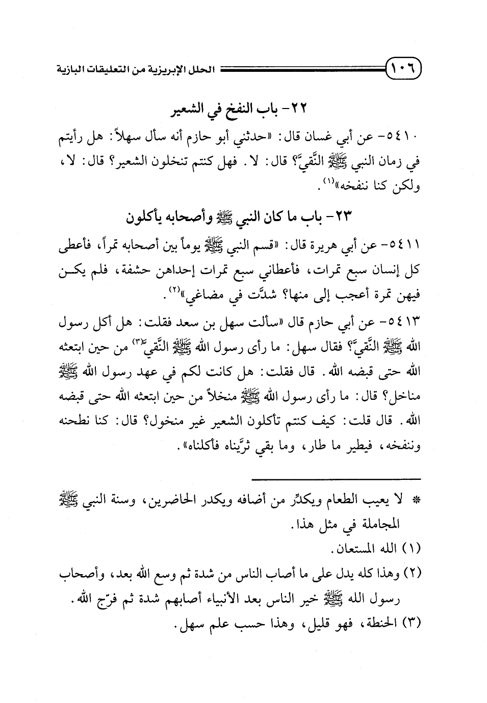 5410 - عن أبي غسان قال: «حدثني أبو حازم أنه سأل سهلًا: هل رأيتم في زمان النبي - صلى الله عليه وسلم - النَّقيَّ؟ قال: لا. فهل كنتم تنخلون الشعير؟ قال: لا، ولكن كنا ننفخه» (¬1).