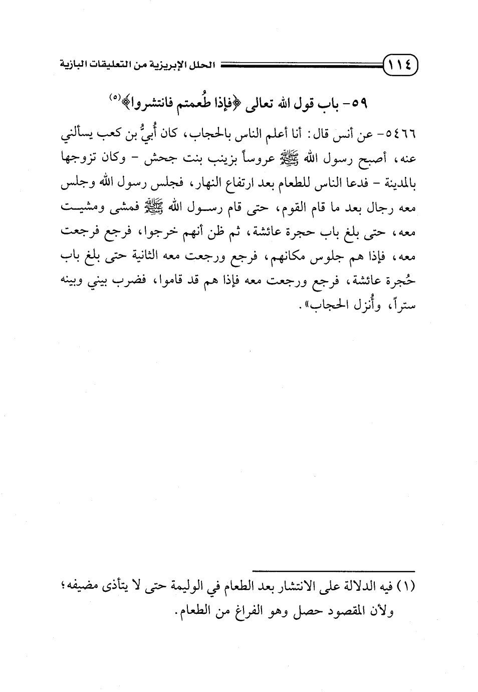 59 - باب قول الله تعالى: {فَإِذَا طَعِمْتُمْ فَانْتَشِرُوا} [الأحزاب: 53] (¬1)