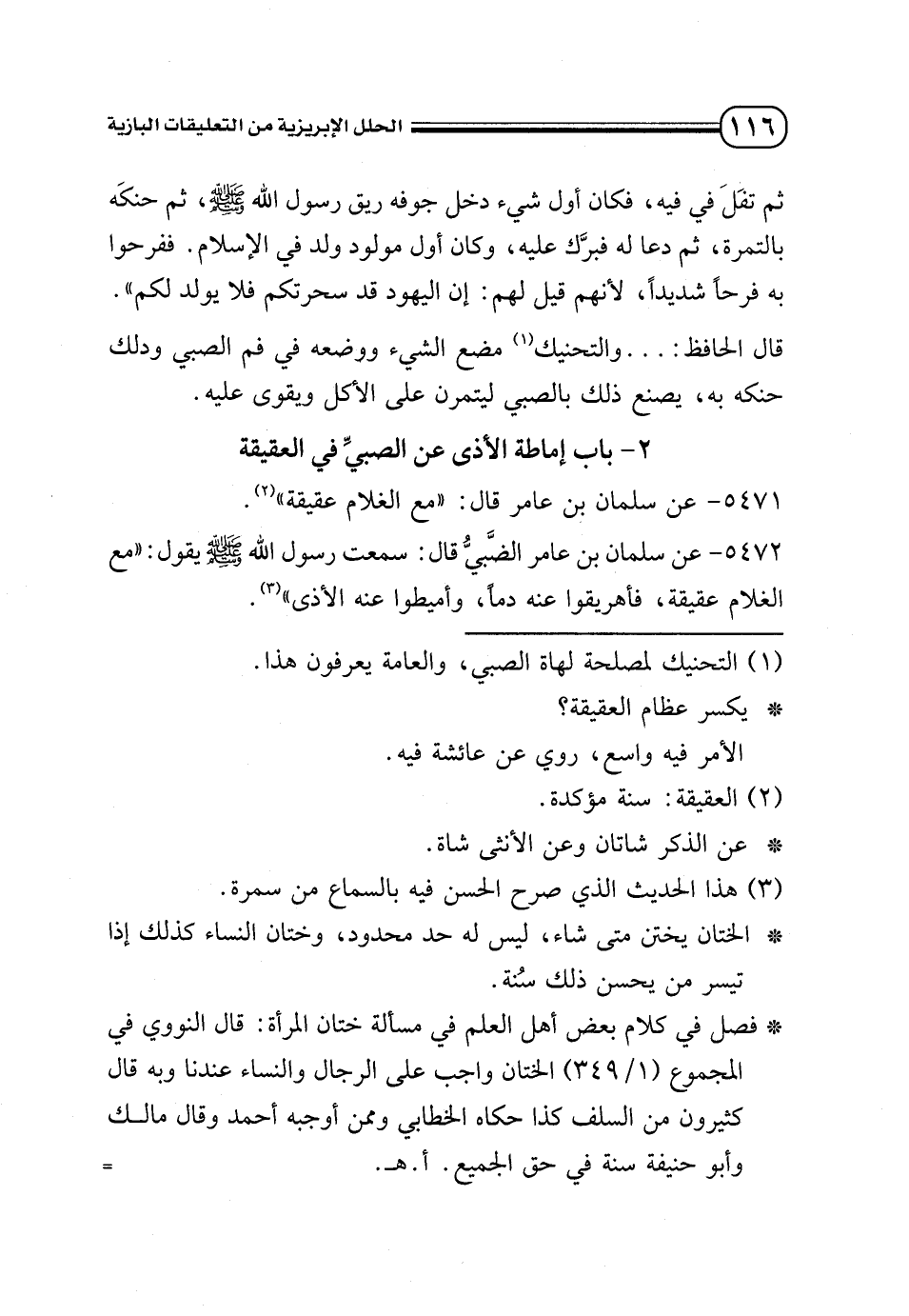 2 - باب إماطة الأذى عن الصبي في العقيقة