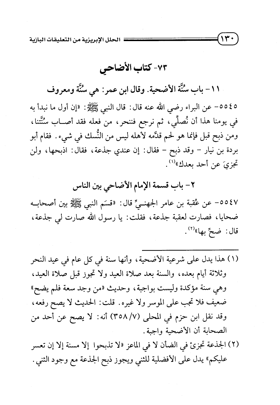 كتاب الحلل الإبريزية من التعليقات البازية على صحيح البخاري (اسم الجزء: 4)