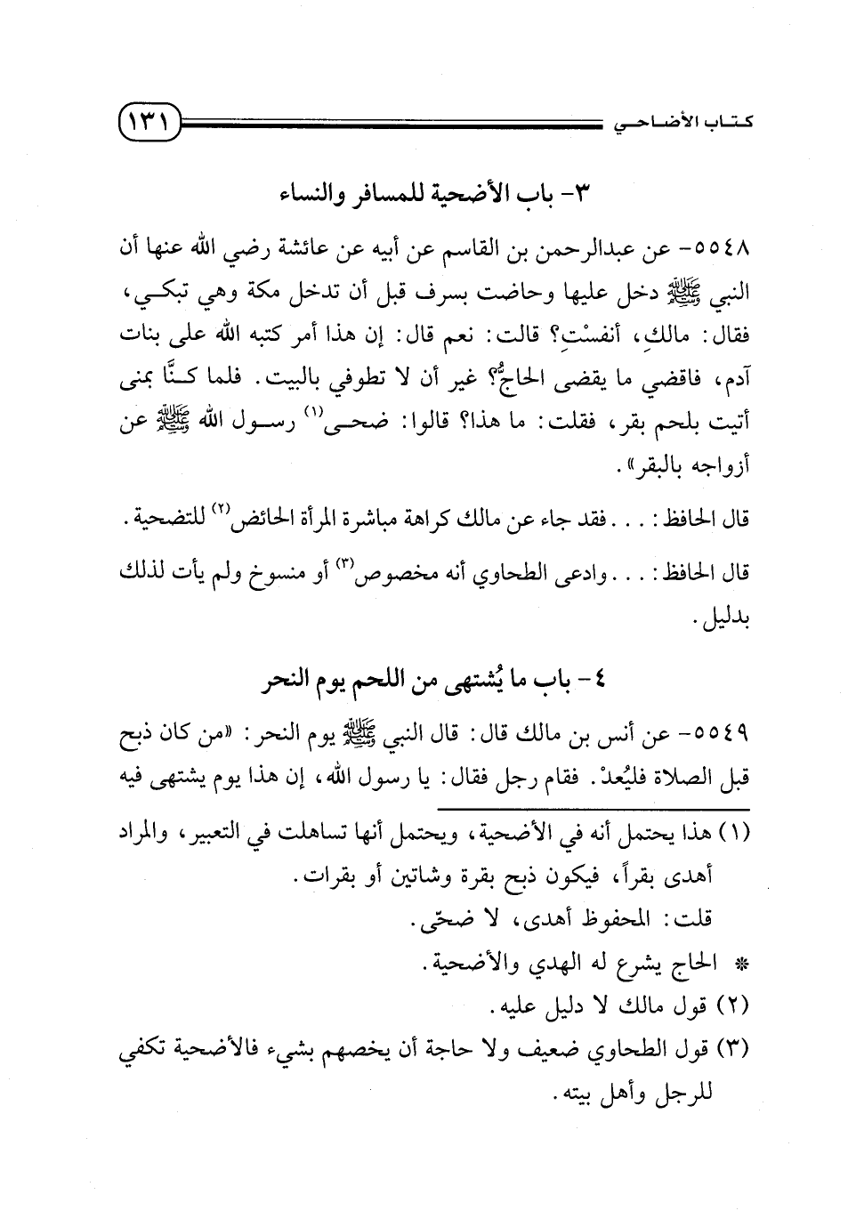 3 - باب الأضحية للمسافر والنساء