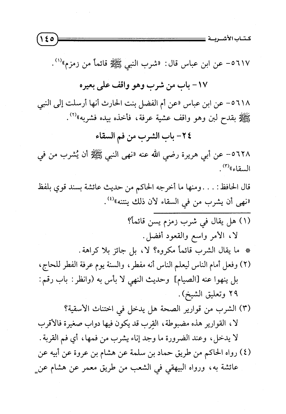 5617 - عن ابن عباس قال: «شرب النبي - صلى الله عليه وسلم - قائمًا من زمزم» (¬1).