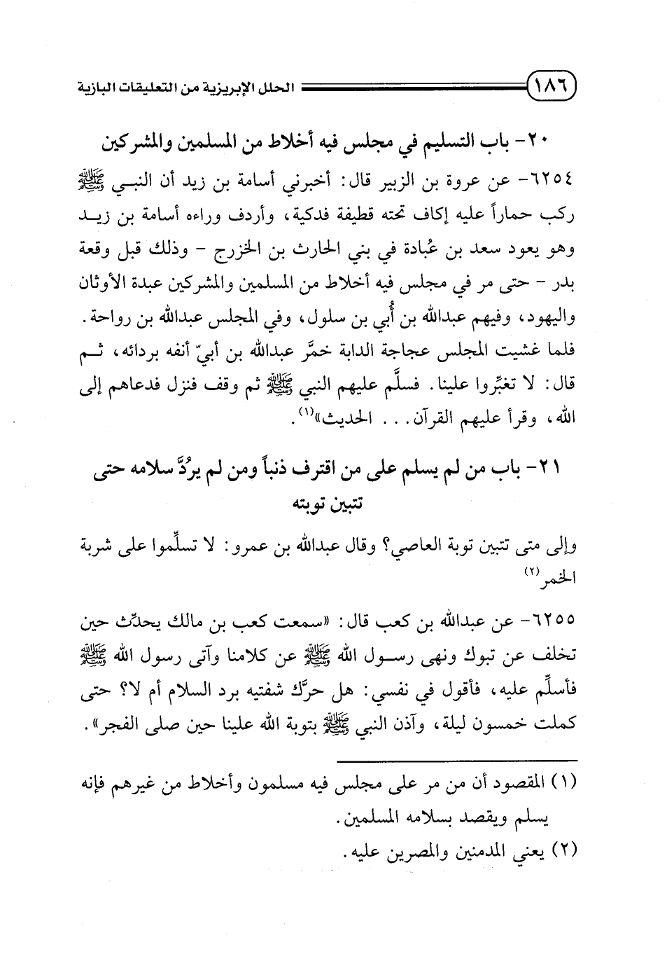 21 - باب من لم يسلم على من اقترف ذنبًا ولم يرُدَّ سلامه حتى تتبين توبته