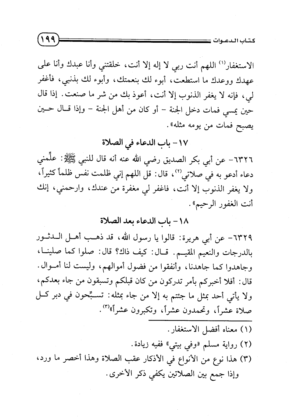 الاستغفار (¬1) اللهم أنت ربي لا إله إلا أنت، خلقتني وأنا عبدك وأنا على عهدك ووعدك ما استطعت، أبوء لك بنعمتك، وأبوء لك بذنبي، فاغفر لي، فإنه لا يغفر الذنوب إلا أنت، أعوذ بك من شر ما صنعت. إذا قال حين يمسي فمات دخل الجنة - أو كان من أهل الجنة - وإذا قال حين يصبح فمات من يومه مثله».