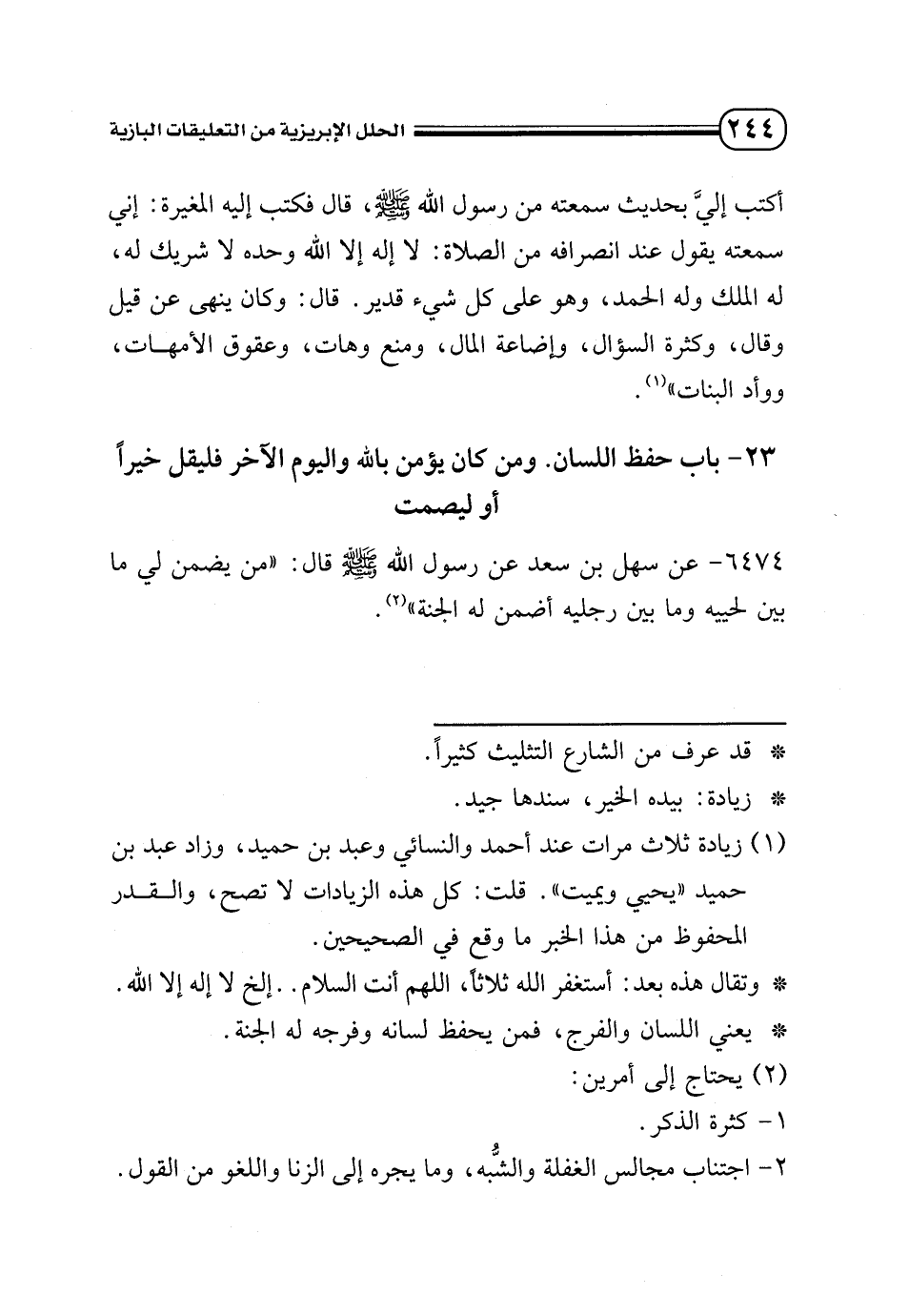 كتاب الحلل الإبريزية من التعليقات البازية على صحيح البخاري (اسم الجزء: 4)