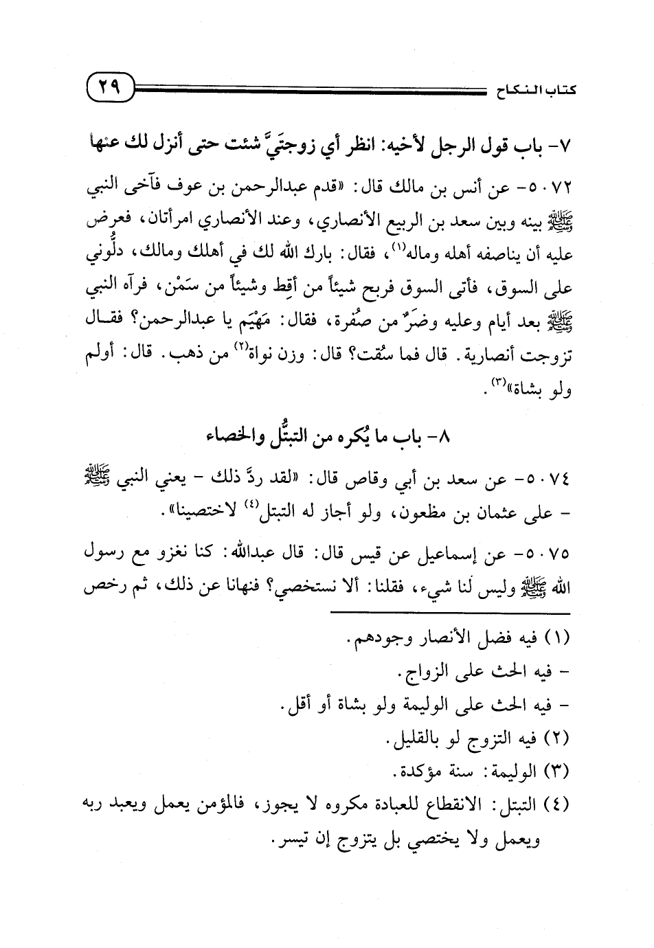 (¬4) التبتل: الانقطاع للعبادة مكروه لا يجوز، فالمؤمن يعمل ويعبد ربه ويعمل ويختصي بل يتزوج إن تيسر.