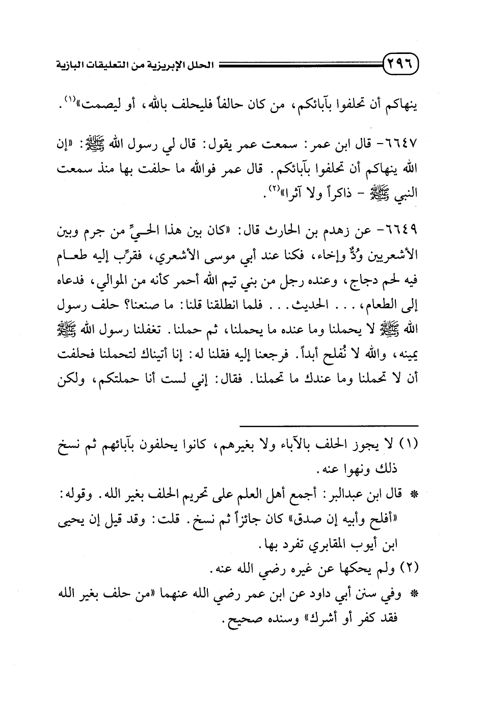 كتاب الحلل الإبريزية من التعليقات البازية على صحيح البخاري (اسم الجزء: 4)