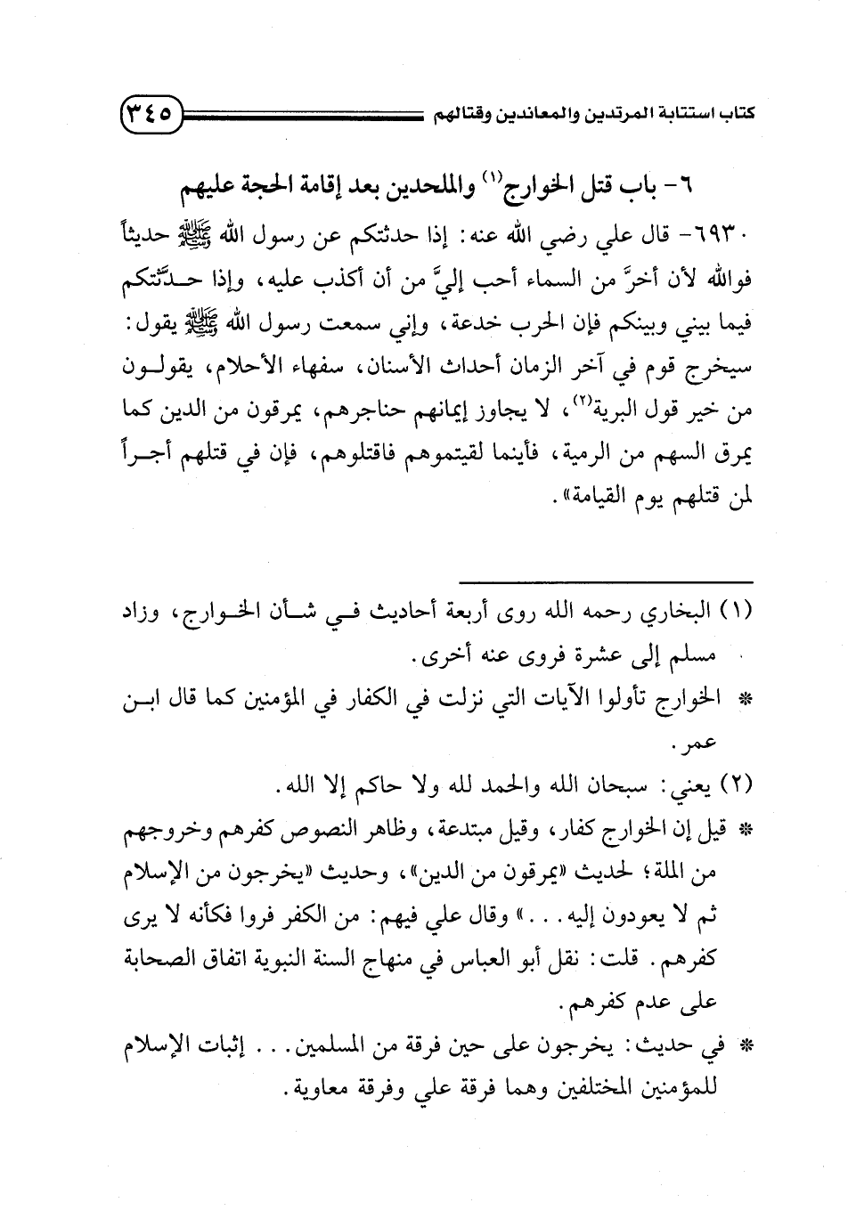 6 - باب قتل الخوارج (¬1) والملحدين بعد إقامة الحجة عليهم