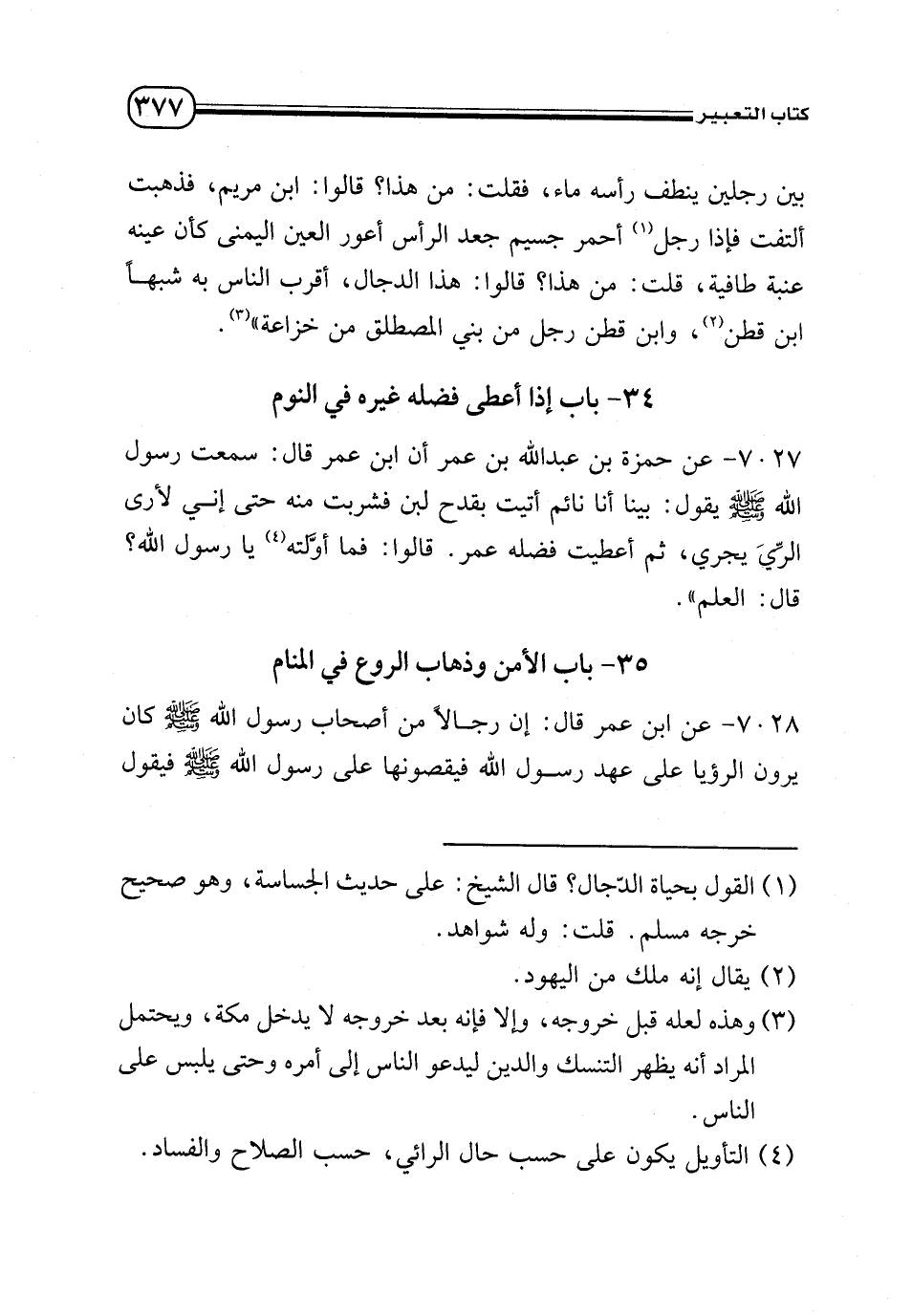 35 - باب الأمن وذهاب الروع في المنام