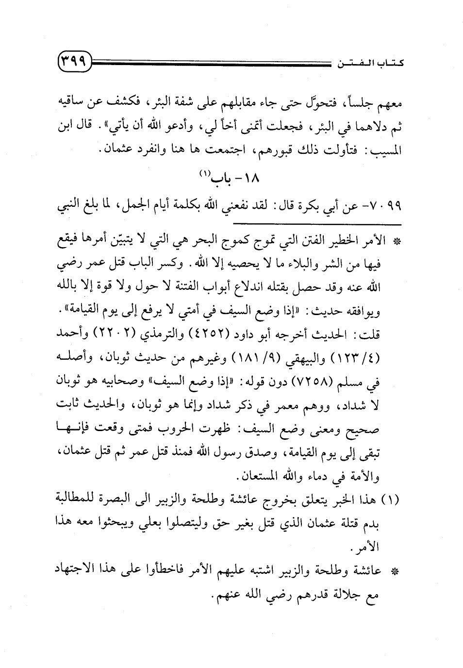 (¬1) هذا الخبر يتعلق بخروج عائشة وطلحة والزبير الى البصرة للمطالبة بدم قتلة عثمان الذي قتل بغير حق وليتصلوا بعلي ويبحثوا معه هذا الأمر.