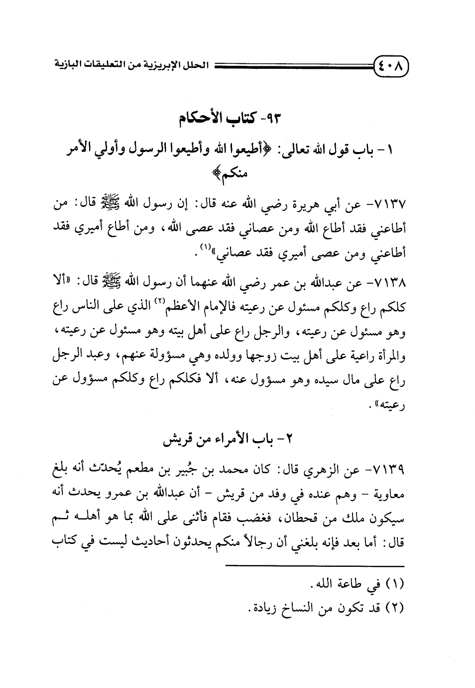 1 - باب قول الله تعالى: {أَطِيعُوا اللَّهَ وَأَطِيعُوا الرَّسُولَ وَأُولِي الْأَمْرِ مِنْكُمْ}