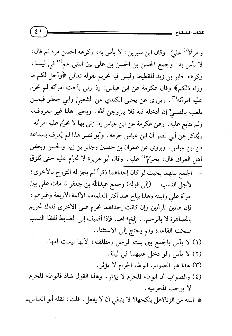 (¬1) لا بأس بالجمع بين بنت الرجل ومطلقته؛ لأنها ليست أمها.