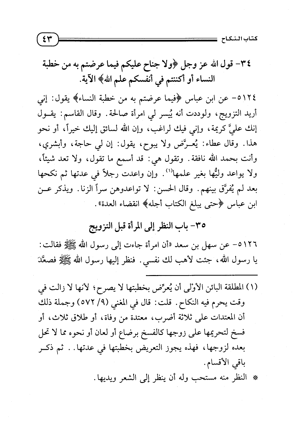 34 - قول الله جل وعز: {وَلَا جُنَاحَ عَلَيْكُمْ فِيمَا عَرَّضْتُمْ بِهِ مِنْ خِطْبَةِ النِّسَاءِ أَوْ أَكْنَنْتُمْ فِي أَنْفُسِكُمْ عَلِمَ اللَّهُ} [البقرة: 235] الآية.