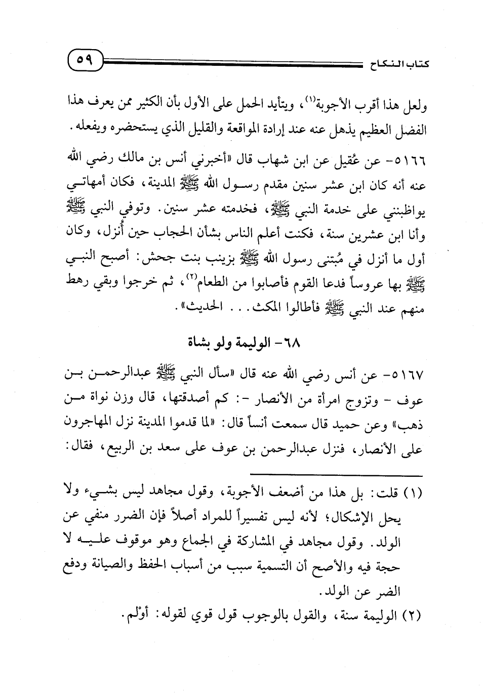 5167 - عن أنس - رضي الله عنه - قال «سأل النبي - صلى الله عليه وسلم - عبد الرحمن بن عوف ... - وتزوج امرأة من الأنصار -: كم أصدقتها، قال وزن نواة من ذهب» وعن حميد قال سمعت أنسًا قال: «لما قدموا المدينة نزل المهاجرون على الأنصار، فنزل عبد الرحمن بن عوف على سعد بن الربيع، فقال: