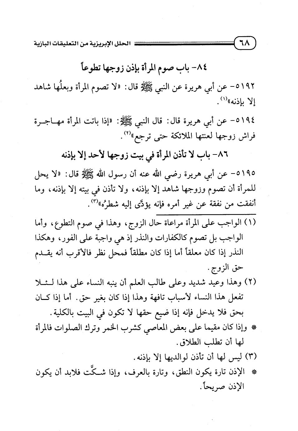 86 - باب لا تأذن المرأة في بيت زوجها لأحد إلا بإذنه