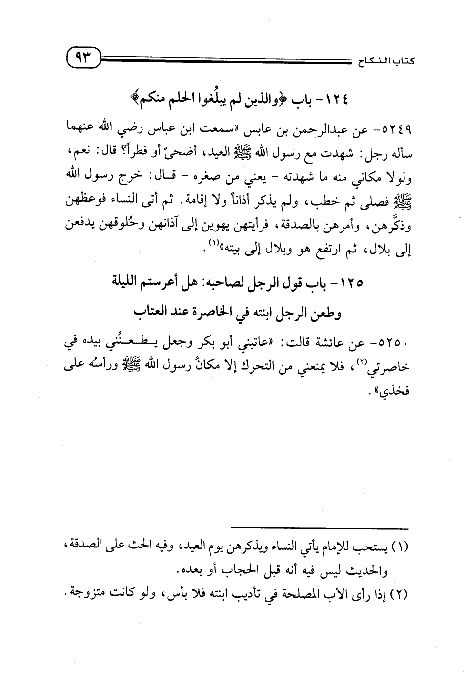 125 - باب قول الرجل لصاحبه هل أعرستم الليلة وطعن الرجل ابنته في الخاصرة عند العتاب