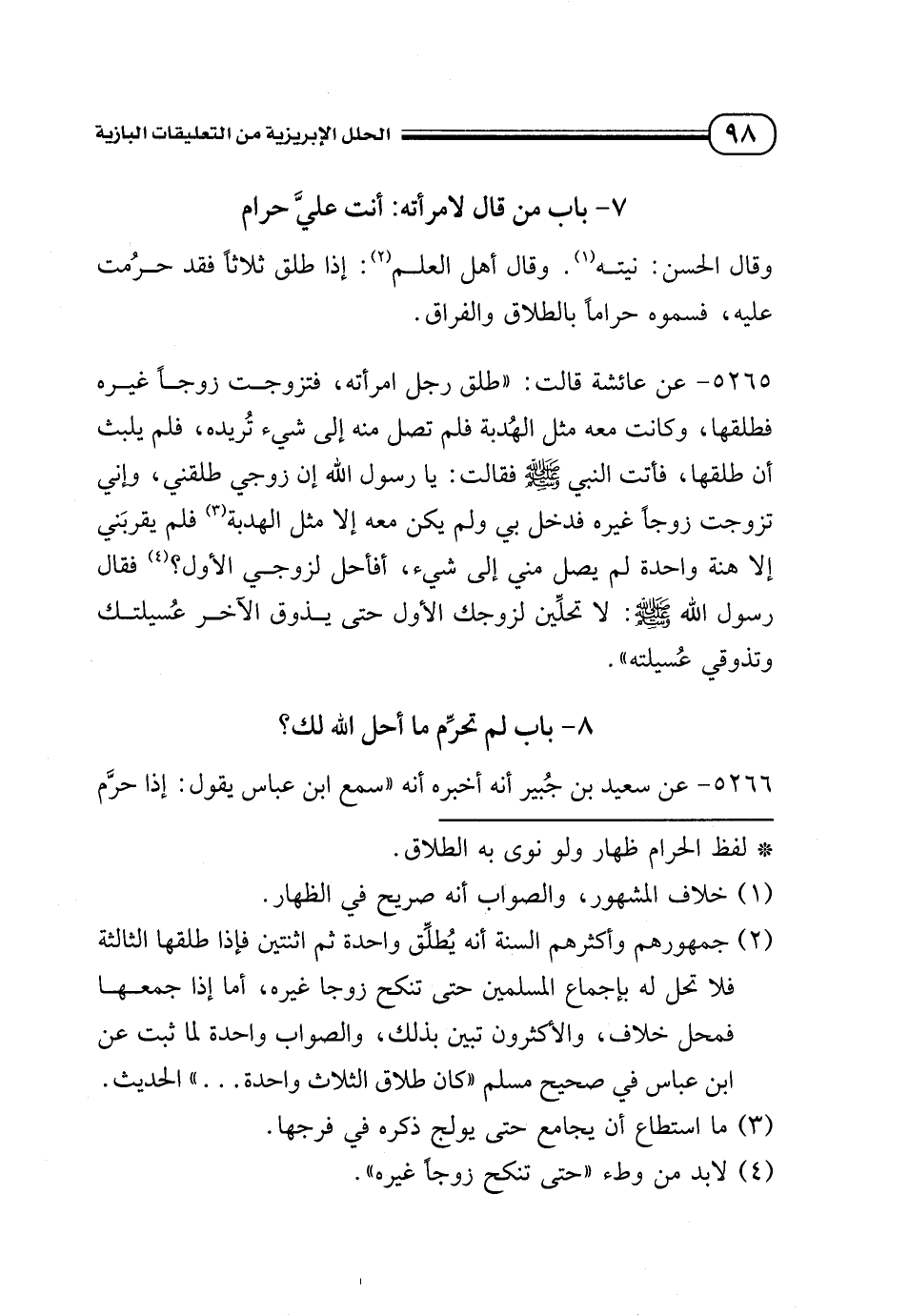 كتاب الحلل الإبريزية من التعليقات البازية على صحيح البخاري (اسم الجزء: 4)