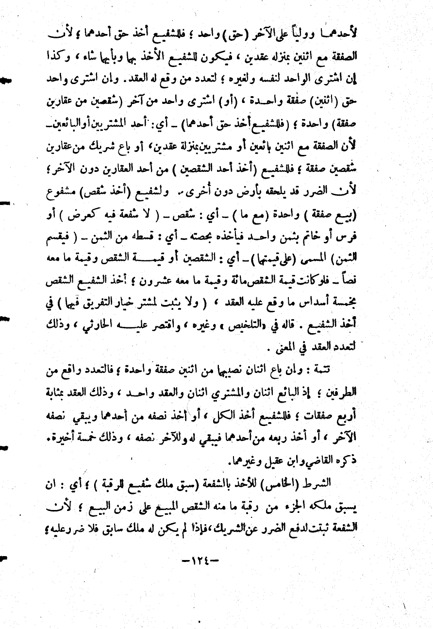 الشَّرْطُ (الْخَامِسُ) لِلْأَخْذِ بِالشُّفْعَةِ (سَبْقُ مِلْكِ شَفِيعٍ لِلرَّقَبَةِ) ؛ أَيْ: أَنْ يَسْبِقَ مِلْكُهُ الْجُزْءَ مِنْ رَقَبَةِ مَا مِنْهُ الشِّقْصُ الْمَبِيعُ عَلَى زَمَنِ الْبَيْعِ؛ لِأَنَّ الشُّفْعَةَ ثَبَتَتْ لِدَفْعِ الضَّرَرِ عَنْ الشَّرِيكِ، فَإِذَا لَمْ يَكُنْ لَهُ مِلْكٌ سَابِقٌ فَلَا ضَرَرَ عَلَيْهِ؛