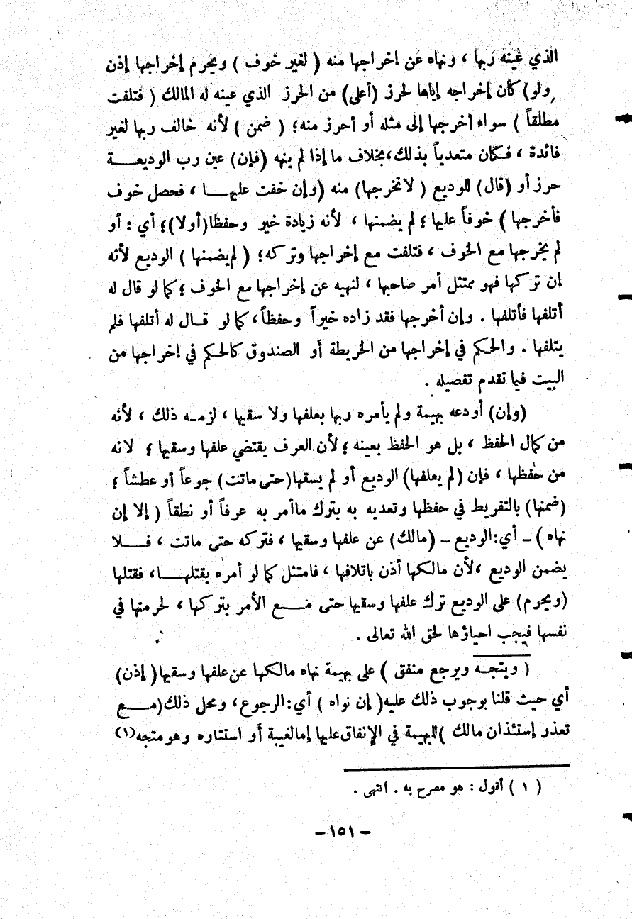 (وَإِنْ) أَوْدَعَهُ بَهِيمَةً وَلَمْ يَأْمُرْهُ رَبُّهَا بِعَلَفِهَا وَلَا سَقْيِهَا، لَزِمَهُ ذَلِكَ، لِأَنَّهُ مِنْ كَمَالِ الْحِفْظِ، بَلْ هُوَ الْحِفْظُ بِعَيْنِهِ؛ لِأَنَّ الْعُرْفَ يَقْتَضِي عَلَفَهَا وَسَقْيَهَا؛ لِأَنَّهُ مِنْ حِفْظِهَا، فَإِنْ (لَمْ يَعْلِفْهَا) الْوَدِيعُ أَوْ لَمْ يَسْقِهَا (حَتَّى مَاتَتْ) جُوعًا أَوْ عَطَشًا؛ (ضَمِنَهَا) بِالتَّفْرِيطِ فِي حِفْظِهَا وَتَعَدِّيهِ بِهِ بِتَرْكِ مَا أُمِرَ بِهِ عُرْفًا أَوْ نُطْقًا (إلَّا إنْ نَهَاهُ) - أَيْ: الْوَدِيعَ - (مَالِكٌ) عَنْ عَلَفِهَا وَسَقْيِهَا، فَتَرَكَهُ حَتَّى مَاتَتْ، فَلَا يَضْمَنُ الْوَدِيعُ، لِأَنَّ مَالِكَهَا أَذِنَ بِإِتْلَافِهَا، فَامْتَثَلَ كَمَا لَوْ أَمَرَهُ بِقَتْلِهَا، فَقَتَلَهَا (وَيَحْرُمُ) عَلَى الْوَدِيعِ تَرْكُ عَلَفِهَا وَسَقْيِهَا حَتَّى مَعَ الْأَمْرِ بِتَرْكِهَا، لِحُرْمَتِهَا فِي نَفْسِهَا فَيَجِبُ إحْيَاؤُهَا لِحَقِّ اللَّهِ تَعَالَى.