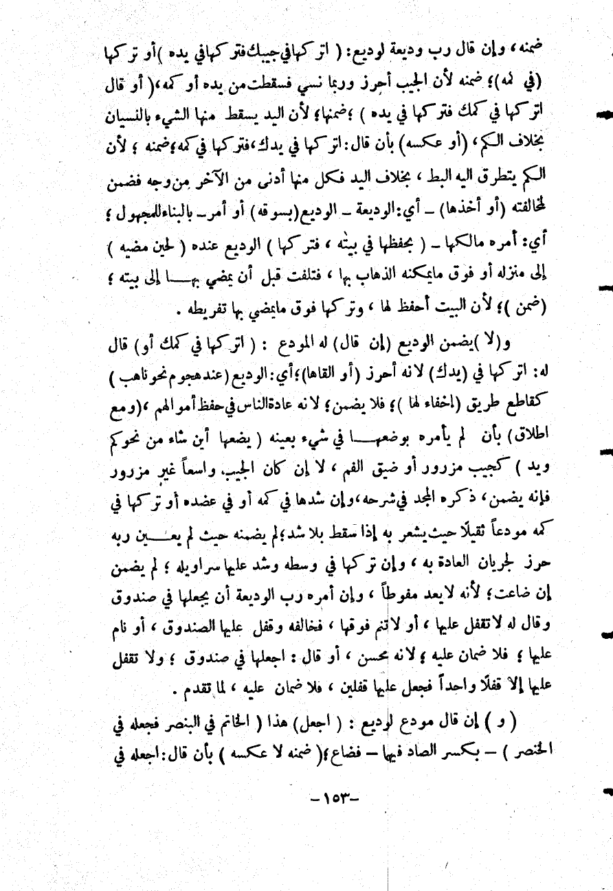 وَ (لَا) يَضْمَنُ الْوَدِيعُ (إنْ قَالَ) لَهُ الْمُودِعَ: (اُتْرُكْهَا فِي كُمِّك أَوْ) قَالَ لَهُ: اُتْرُكْهَا فِي (يَدِك) لِأَنَّهُ أَحْرَزُ (أَوْ أَلْقَاهَا) ؛ أَيْ: الْوَدِيعُ (عِنْدَ هُجُومِ نَحْوِ نَاهِبٍ) كَقَاطِعِ طَرِيقٍ (إخْفَاءً لَهَا) ؛ فَلَا يَضْمَنُ؛ لِأَنَّهُ عَادَةُ النَّاسِ فِي حِفْظِ أَمْوَالِهِمْ، (وَمَعَ إطْلَاقٍ) بِأَنْ لَمْ يَأْمُرْهُ بِوَضْعِهَا فِي شَيْءٍ بِعَيْنِهِ (يَضَعُهَا أَيْنَ شَاءَ مِنْ نَحْوِ كُمٍّ وَيَدٍ) كَجَيْبٍ مَزْرُورٍ أَوْ ضَيِّقِ الْفَمِ، لَا إنْ كَانَ الْجَيْبُ وَاسِعًا غَيْرَ مَزْرُورٍ فَإِنَّهُ يَضْمَنُ، ذَكَرَهُ الْمَجْدُ فِي شَرْحِهِ، وَإِنْ شَدَّهَا فِي كُمِّهِ أَوْ فِي عَضُدِهِ أَوْ تَرَكَهَا فِي كُمِّهِ مُودِعًا ثَقِيلًا حَيْثُ يَشْعُرُ بِهِ إذَا سَقَطَ بِلَا شَدٍّ؛ لَمْ يَضْمَنْهُ حَيْثُ لَمْ يُعَيِّنْ رَبُّهُ حِرْزًا لِجَرَيَانِ الْعَادَةِ بِهِ، وَإِنْ تَرَكَهَا فِي وَسَطِهِ وَشَدَّ عَلَيْهَا سَرَاوِيلَهُ؛ لَمْ يَضْمَنْ إنْ ضَاعَتْ؛ لِأَنَّهُ لَا يُعَدُّ مُفَرِّطًا.