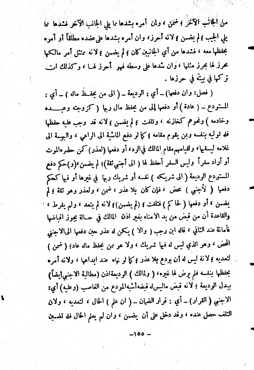 (فَصْلٌ: وَإِنْ دَفَعَهَا) - أَيْ: الْوَدِيعَةَ - (إلَى مَنْ يَحْفَظُ مَالَهُ) - أَيْ: الْمُسْتَوْدَعِ - (عَادَةً) أَوْ دَفَعَهَا إلَى مَنْ يَحْفَظُ مَالَ رَبِّهَا (كَزَوْجَتِهِ وَعَبْدِهِ وَخَادِمِهِ) وَنَحْوهمْ كَخَازِنِهِ، وَتَلِفَتْ؛ لَمْ يَضْمَنْ؛ لِأَنَّهُ قَدْ وَجَبَ عَلَيْهِ حِفْظُهَا فَلَهُ تَوَلِّيهِ بِنَفْسِهِ وَبِمَنْ يَقُومُ مَقَامَهُ؛ كَمَا لَوْ دَفَعَ الْمَاشِيَةَ إلَى الرَّاعِي، وَالْبَهِيمَةَ إلَى غُلَامِهِ لِيَسْقِيَهَا، وَلِقِيَامِهِمْ مَقَامَ الْمَالِكِ فِي الرَّدِّ، أَوْ دَفَعَهَا (لِعُذْرٍ) كَمَنْ حَضَرَهُ الْمَوْتُ أَوْ أَرَادَ سَفَرًا وَلَيْسَ السَّفَرُ أَحْفَظَ لَهَا (إلَى أَجْنَبِيٍّ ثِقَةٍ) ؛ لَمْ يَضْمَنْ.