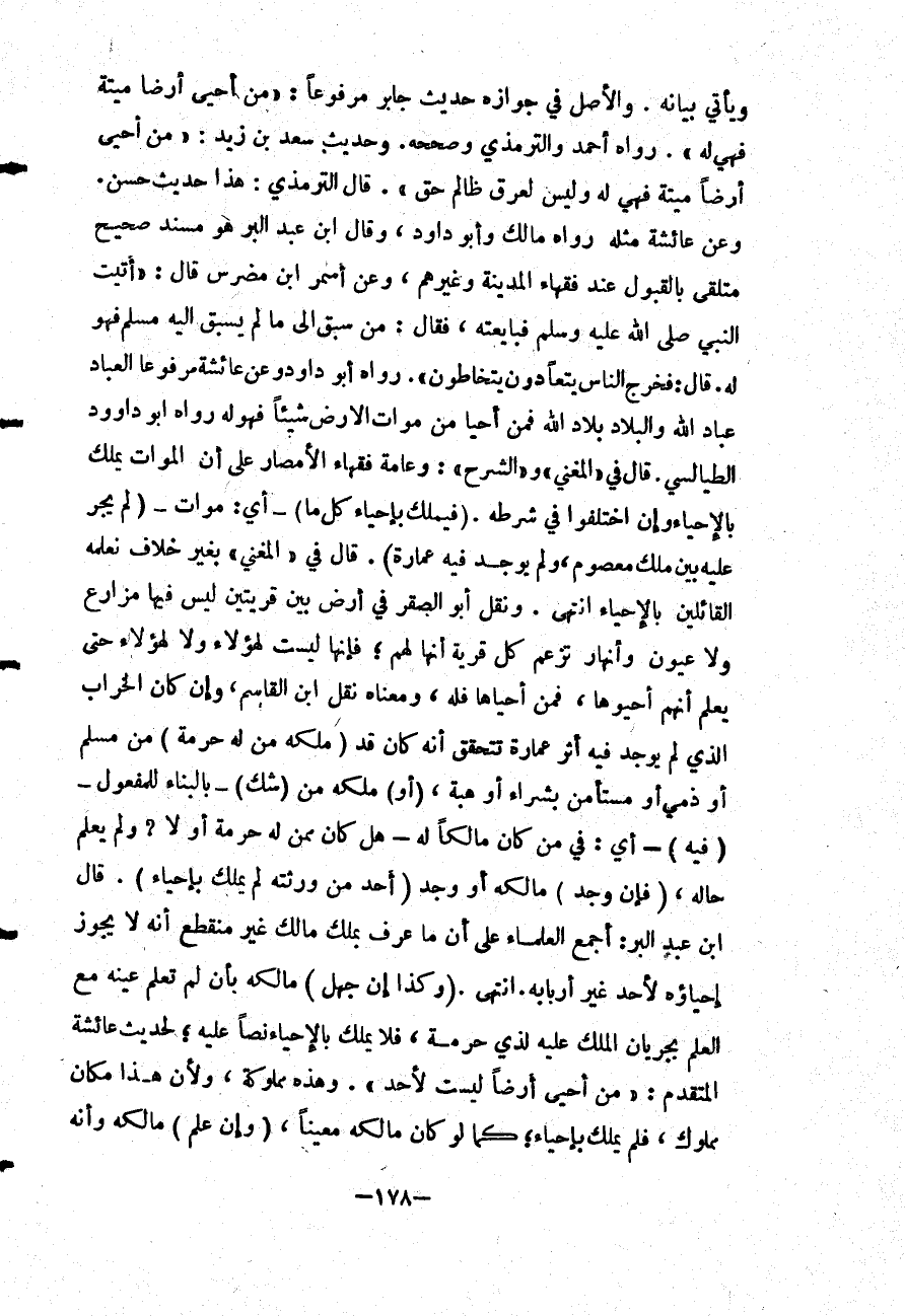 قَالَ ابْنُ عَبْدِ الْبَرِّ: أَجْمَعَ الْعُلَمَاءُ عَلَى أَنَّ مَا عُرِفَ بِمِلْكِ مَالِكٍ غَيْرِ مُنْقَطِعٍ أَنَّهُ لَا يَجُوزُ إحْيَاؤُهُ لِأَحَدٍ غَيْرِ أَرْبَابِهِ. انْتَهَى.