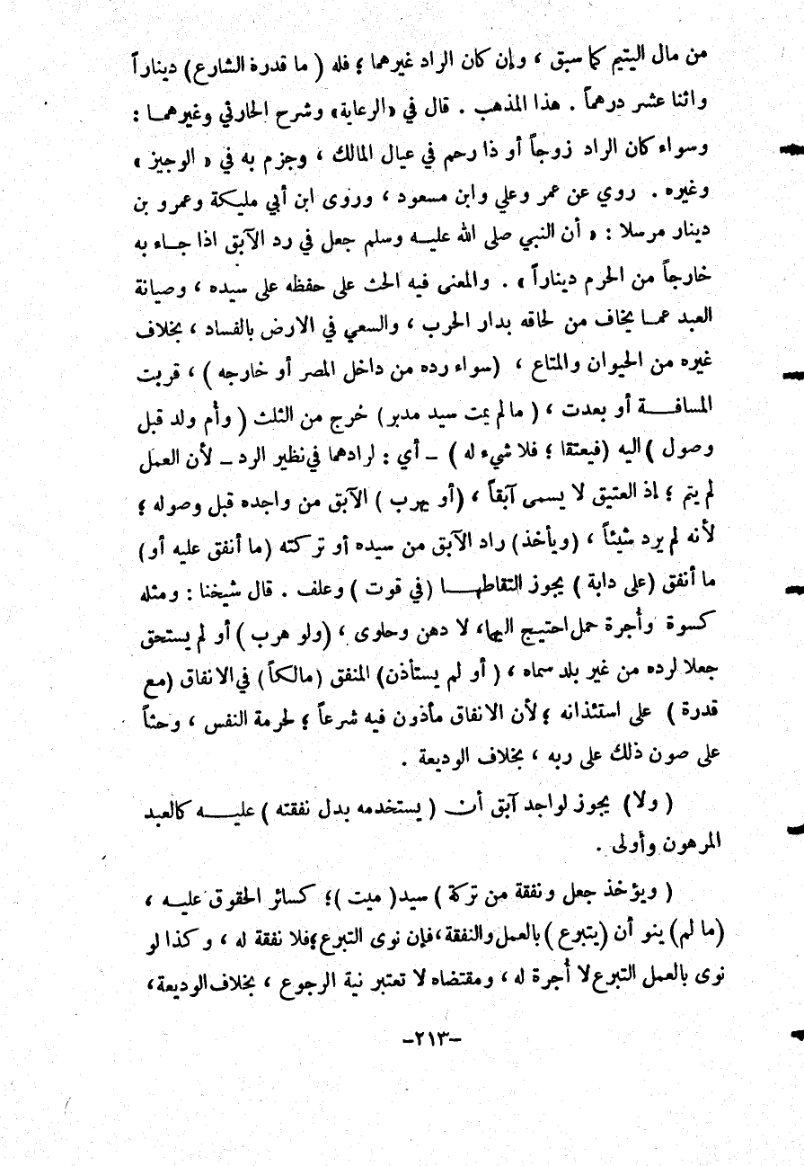 رُوِيَ عَنْ عُمَرَ وَعَلِيٍّ وَابْنِ مَسْعُودٍ، وَرَوَى ابْنُ أَبِي مُلَيْكَةَ وَعَمْرُو بْنُ دِينَارٍ مُرْسَلًا: «أَنَّ النَّبِيَّ - صَلَّى اللَّهُ عَلَيْهِ وَسَلَّمَ - جَعَلَ فِي رَدِّ الْآبِقِ إذَا جَاءَ بِهِ خَارِجًا مِنْ الْحَرَمِ دِينَارًا» .