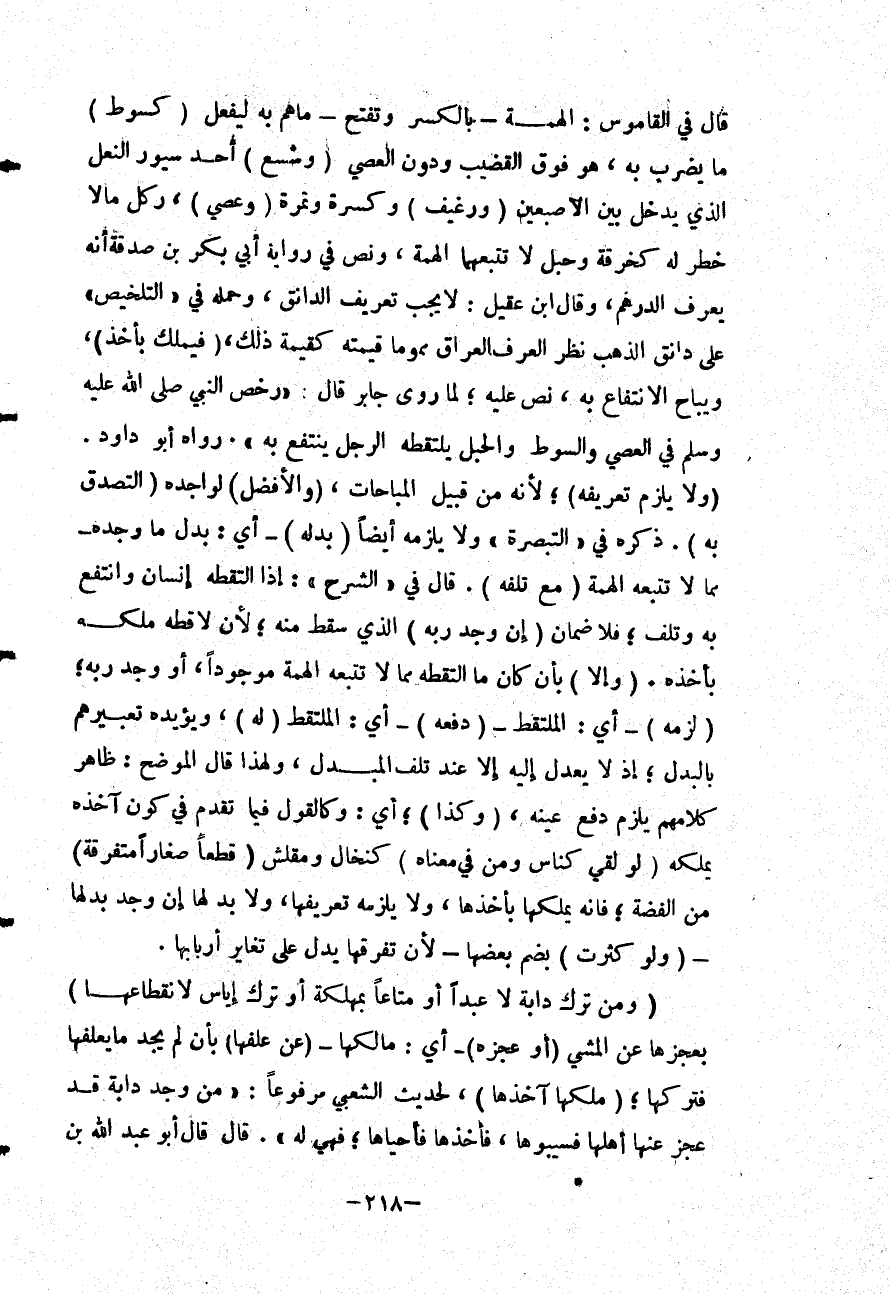 (وَمَنْ تَرَكَ دَابَّةً لَا عَبْدًا أَوْ مَتَاعًا بِمَهْلَكَةٍ أَوْ تُرِكَ إيَاسٌ لِانْقِطَاعِهَا) بِعَجْزِهَا عَنْ الْمَشْيِ (أَوْ عَجْزِهِ) - أَيْ: مَالِكِهَا - (عَنْ عَلَفِهَا) بِأَنْ لَمْ يَجِدْ مَا يَعْلِفُهَا فَتَرَكَهَا؛ (مَلَكَهَا آخِذُهَا) ، لِحَدِيثِ الشَّعْبِيِّ مَرْفُوعًا: «مَنْ وَجَدَ دَابَّةً قَدْ عَجَزَ عَنْهَا أَهْلُهَا فَسَيَّبُوهَا، فَأَخَذَهَا فَأَحْيَاهَا؛ فَهِيَ لَهُ.» قَالَ