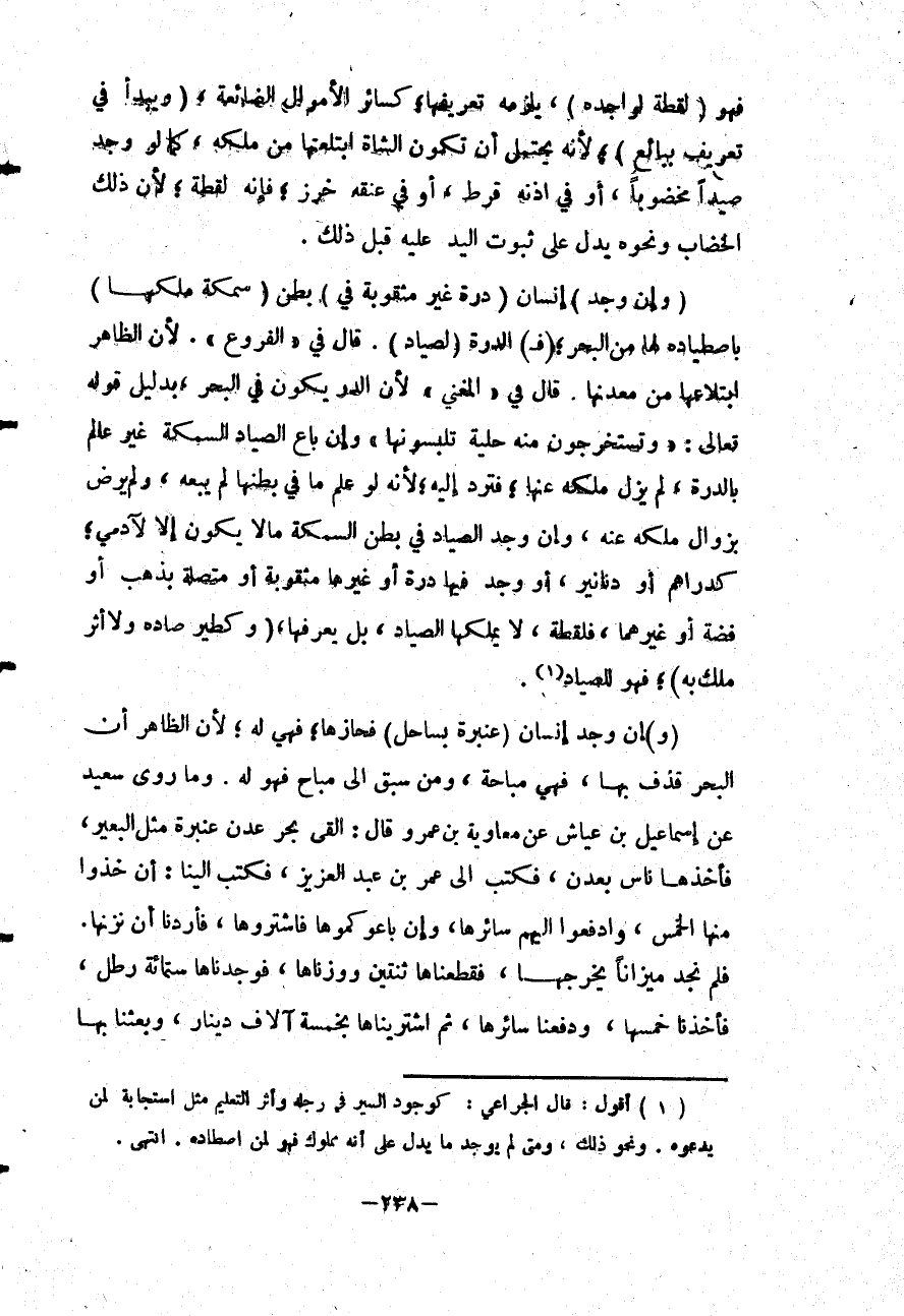 قَالَ فِي " الْمُغْنِي " لِأَنَّ الدُّرَّ يَكُونُ فِي الْبَحْرِ، بِدَلِيلِ قَوْله تَعَالَى: {وَتَسْتَخْرِجُونَ حِلْيَةً تَلْبَسُونَهَا} [فاطر: 12] وَإِنْ بَاعَ الصَّيَّادُ السَّمَكَةَ غَيْرَ عَالِمٍ بِالدُّرَّةِ، لَمْ يَزُلْ مِلْكُهُ عَنْهَا؛ فَتُرَدُّ إلَيْهِ؛ لِأَنَّهُ لَوْ عَلِمَ مَا فِي بَطْنِهَا لَمْ يَبِعْهُ، وَلَمْ يَرْضَ بِزَوَالِ مِلْكِهِ عَنْهُ، وَإِنْ وَجَدَ الصَّيَّادُ فِي بَطْنِ السَّمَكَةِ مَا لَا يَكُونُ إلَّا لِآدَمِيٍّ؛ كَدَرَاهِمَ أَوْ دَنَانِيرَ، أَوْ وَجَدَ فِيهَا دُرَّةً أَوْ غَيْرَهَا مَثْقُوبَةً أَوْ مُتَّصِلَةً بِذَهَبٍ أَوْ فِضَّةٍ أَوْ غَيْرِهِمَا، فَلُقَطَةٌ، لَا يَمْلِكُهَا الصَّيَّادُ، بَلْ يُعَرِّفُهَا، (وَكَطَيْرٍ صَادَهُ، وَلَا أَثَرَ مِلْكٍ بِهِ) ؛ فَهُوَ لِلصَّيَّادِ.