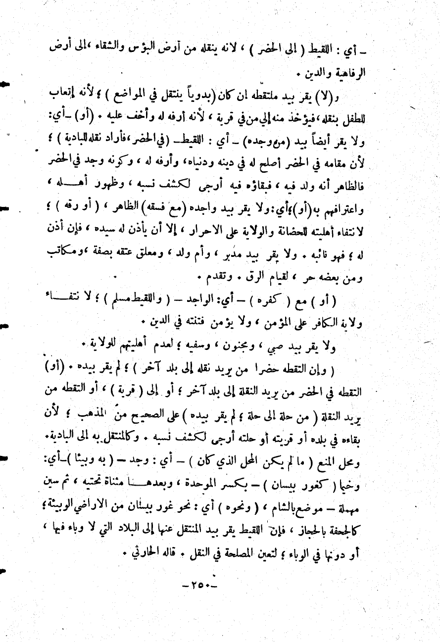 (أَوْ) - أَيْ: وَلَا يُقَرُّ أَيْضًا بِيَدِ (مَنْ وَجَدَهُ) - أَيْ: اللَّقِيطَ - (فِي الْحَضَرِ، فَأَرَادَ نَقْلَهُ لِلْبَادِيَةِ) ؛ لِأَنَّ مَقَامَهُ فِي الْحَضَرِ أَصْلَحُ لَهُ فِي دِينِهِ وَدُنْيَاهُ، وَأَرْفَهُ لَهُ، وَكَوْنُهُ وُجِدَ فِي الْحَضَرِ فَالظَّاهِرُ أَنَّهُ وُلِدَ فِيهِ، فَبَقَاؤُهُ فِيهِ أَرْجَى لِكَشْفِ نَسَبِهِ، وَظُهُورِ أَهْلِهِ، وَاعْتِرَافِهِمْ بِهِ (أَوْ) ؛ أَيْ: وَلَا يُقَرُّ بِيَدِ وَاجِدِهِ (مَعَ فِسْقِهِ) الظَّاهِرِ، (أَوْ رِقِّهِ) ؛ لِانْتِفَاءِ أَهْلِيَّتِهِ لِلْحَضَانَةِ وَالْوِلَايَةِ عَلَى الْأَحْرَارِ، إلَّا أَنْ يَأْذَنَ لَهُ سَيِّدُهُ، فَإِنْ أَذِنَ لَهُ؛ فَهُوَ نَائِبُهُ.