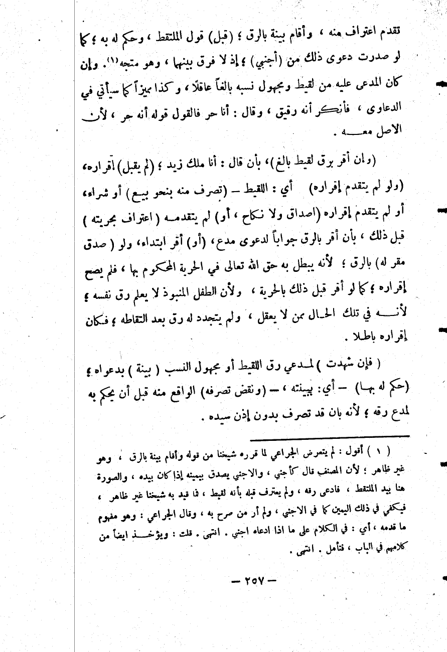 تَقَدُّمِ اعْتِرَافٍ مِنْهُ، وَأَقَامَ بَيِّنَةً بِالرِّقِّ؛ (قُبِلَ) قَوْلُ الْمُلْتَقِطِ، وَحُكِمَ لَهُ بِهِ؛ كَمَا لَوْ صَدَرَتْ دَعْوَى ذَلِكَ مِنْ (أَجْنَبِيٍّ) ؛ إذْ لَا فَرْقَ بَيْنَهُمَا، وَهُوَ مُتَّجِهٌ.