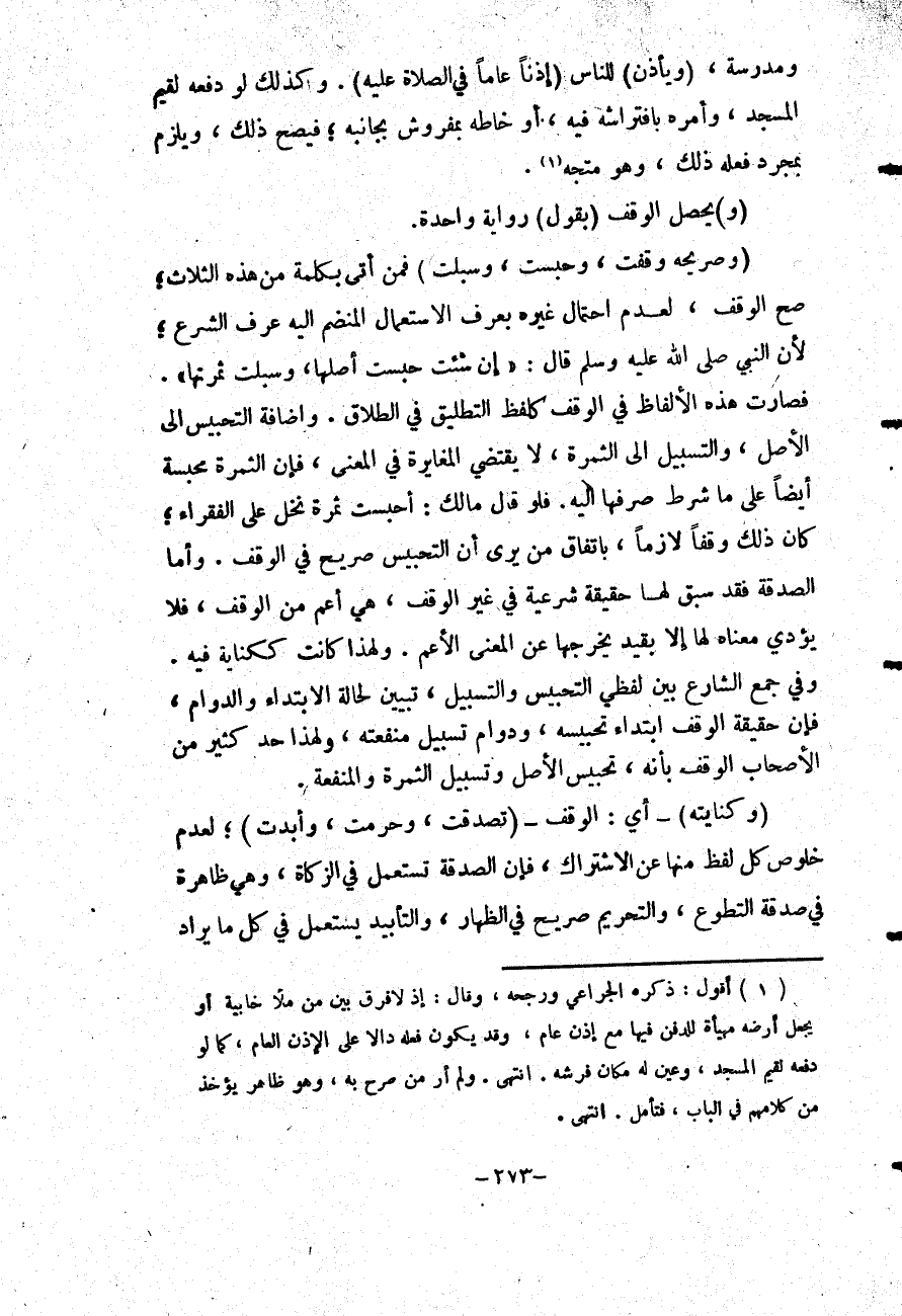 وَفِي جَمْعِ الشَّارِعِ بَيْنَ لَفْظَيْ التَّحْبِيسِ وَالتَّسْبِيلِ، تَبْيِينٌ لِحَالَةِ الِابْتِدَاءِ وَالدَّوَامِ، فَإِنَّ حَقِيقَةَ الْوَقْفِ ابْتِدَاءُ تَحْبِيسِهِ، وَدَوَامُ تَسْبِيلِ مَنْفَعَتِهِ؛ وَلِهَذَا حَدَّ كَثِيرٌ مِنْ الْأَصْحَابِ الْوَقْفَ بِأَنَّهُ، تَحْبِيسُ الْأَصْلِ وَتَسْبِيلُ الثَّمَرَةِ وَالْمَنْفَعَةِ.