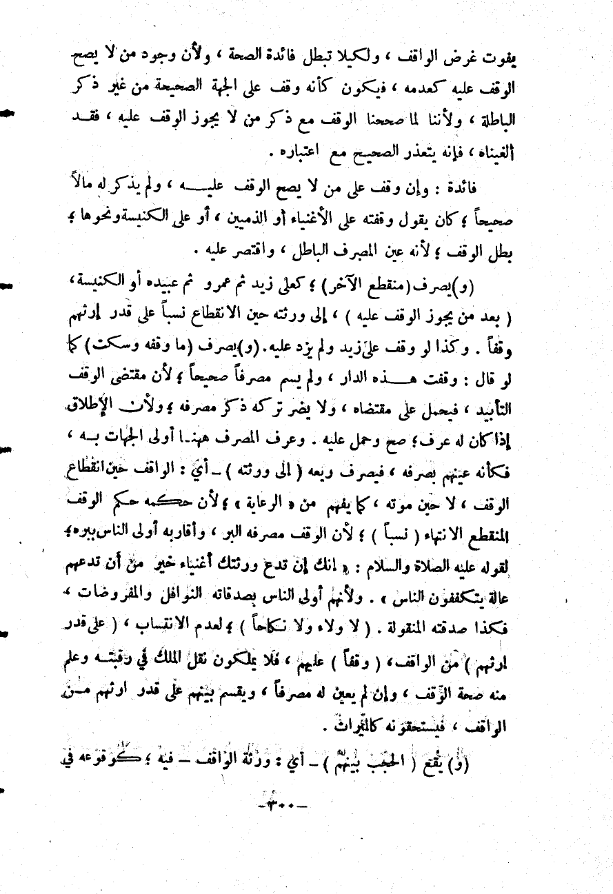 : فَائِدَةٌ وَإِنْ وَقَفَ عَلَى مَنْ لَا يَصِحُّ الْوَقْفُ عَلَيْهِ، وَلَمْ يَذْكُرْ لَهُ مَالًا صَحِيحًا؛ كَأَنْ يَقُولَ: وَقَفْتُهُ عَلَى الْأَغْنِيَاءِ أَوْ الذِّمِّيِّينَ، أَوْ عَلَى الْكَنِيسَةِ وَنَحْوِهَا؛ بَطَلَ الْوَقْفُ؛ لِأَنَّهُ عَيَّنَ الْمَصْرِفَ الْبَاطِلَ، وَاقْتَصَرَ عَلَيْهِ.