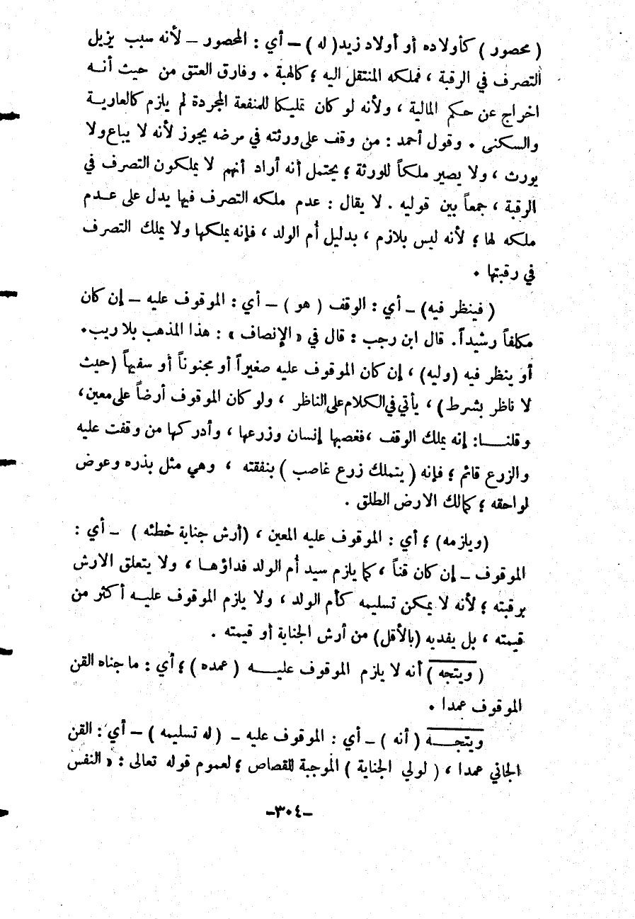 لَا يُقَالُ: عَدَمُ مِلْكِهِ التَّصَرُّفَ فِيهَا يَدُلُّ عَلَى عَدَمِ مِلْكِهِ لَهَا؛ لِأَنَّهُ لَيْسَ بِلَازِمٍ، بِدَلِيلِ أُمِّ الْوَلَدِ، فَإِنَّهُ يَمْلِكُهَا وَلَا يَمْلِكُ التَّصَرُّفَ فِي رَقَبَتِهَا (فَيَنْظُرُ فِيهِ) - أَيْ: الْوَقْفِ (هُوَ) - أَيْ: الْمَوْقُوفُ عَلَيْهِ - إنْ كَانَ مُكَلَّفًا رَشِيدًا.