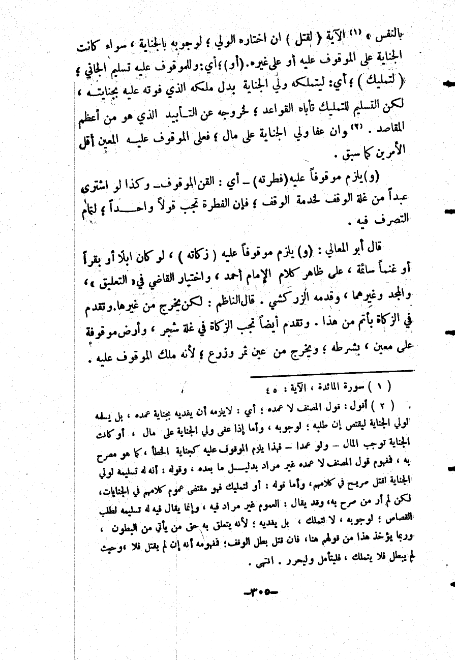 {النَّفْسَ بِالنَّفْسِ} [المائدة: 45] الْآيَةُ (لِقَتْلٍ) إنْ اخْتَارَهُ الْوَلِيُّ؛ لِوُجُوبِهِ بِالْجِنَايَةِ، سَوَاءٌ كَانَتْ الْجِنَايَةُ عَلَى الْمَوْقُوفِ عَلَيْهِ أَوْ عَلَى غَيْرِهِ.