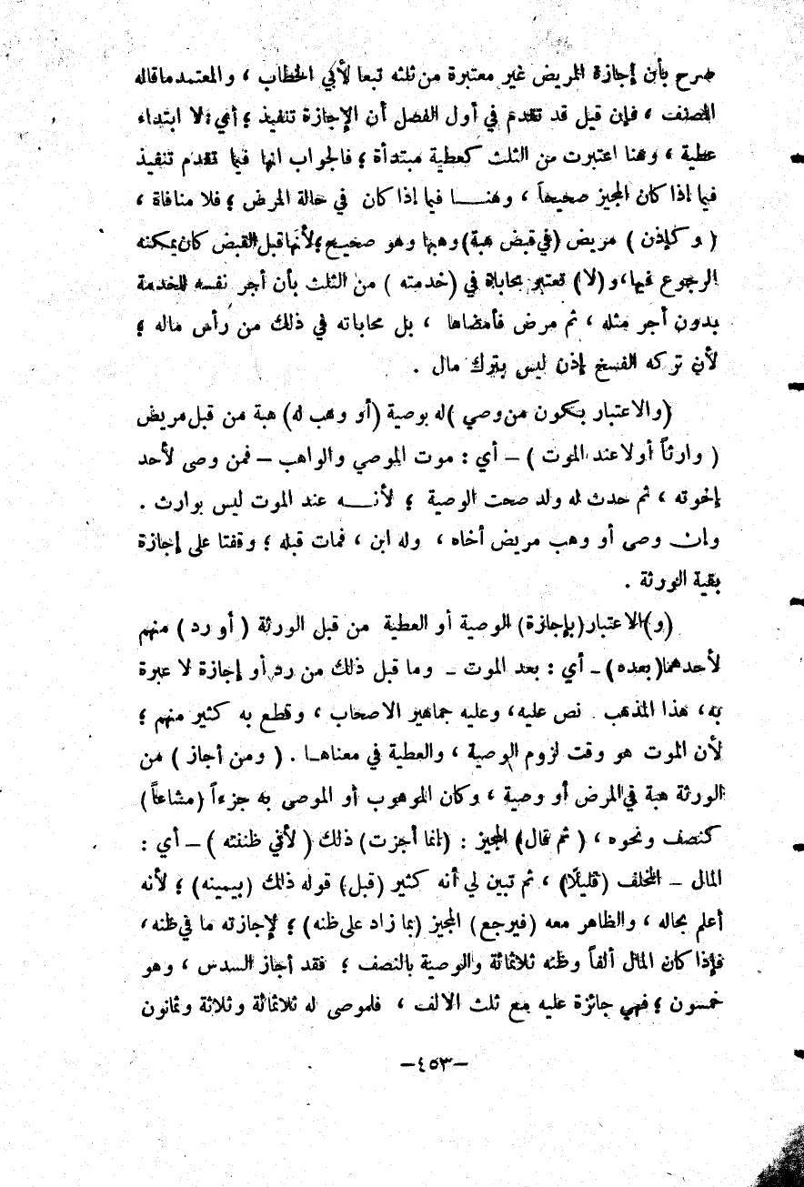(وَمَنْ أَجَازَ) مِنْ الْوَرَثَةِ هِبَةً فِي الْمَرَضِ أَوْ وَصِيَّةً، وَكَانَ الْمَوْهُوبُ أَوْ الْمُوصَى بِهِ جُزْءًا (مَشَاعًا) كَنِصْفٍ وَنَحْوِهِ (ثُمَّ قَالَ) الْمُجِيزُ: (إنَّمَا أَجَزْت) ذَلِكَ (لِأَنِّي ظَنَنْته) - أَيْ: الْمَالَ - الْمُخَلَّفَ (قَلِيلًا) ثُمَّ تَبَيَّنَ لِي أَنَّهُ كَثِيرٌ (قُبِلَ) قَوْلُهُ ذَلِكَ (بِيَمِينِهِ) لِأَنَّهُ أَعْلَمُ بِحَالِهِ، وَالظَّاهِرُ مَعَهُ (فَيَرْجِعُ) الْمُجِيزُ (بِمَا زَادَ عَلَى ظَنِّهِ) لِإِجَازَتِهِ مَا فِي ظَنِّهِ، فَإِذَا كَانَ الْمَالُ أَلْفًا وَظَنَّهُ ثَلَاثَمِائَةٍ وَالْوَصِيَّةُ بِالنِّصْفِ؛ فَقَدْ أَجَازَ السُّدُسَ، وَهُوَ خَمْسُونَ؛ فَهِيَ جَائِزَةٌ عَلَيْهِ مَعَ ثُلُثِ الْأَلْفِ، فَلِمُوصَى لَهُ ثَلَاثُمِائَةٍ وَثَلَاثَةٌ وَثَمَانُونَ