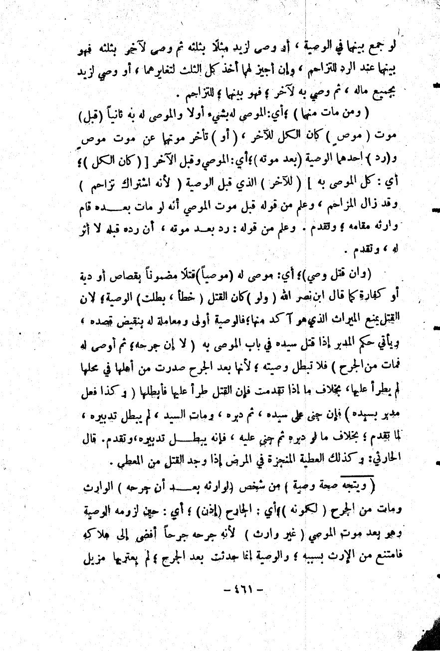 (وَمَنْ مَاتَ مِنْهُمَا) أَيْ: الْمُوصَى لَهُ بِشَيْءٍ أَوَّلًا وَالْمُوصَى لَهُ بِهِ ثَانِيًا (قَبْلَ) مَوْتِ (مُوصٍ) كَانَ الْكُلُّ لِلْآخَرِ (أَوْ) تَأَخَّرَ مَوْتُهُمَا عَنْ مَوْتِ مُوصٍ وَ (رَدَّ) أَحَدُهُمَا الْوَصِيَّةَ (بَعْدَ مَوْتِهِ) أَيْ: الْمُوصِي وَقَبِلَ الْآخَرُ [ (كَانَ الْكُلُّ) أَيْ: كُلُّ الْمُوصَى بِهِ] (لِلْآخَرِ) الَّذِي قَبِلَ الْوَصِيَّةَ (لِأَنَّهُ اشْتِرَاكُ تَزَاحُمٍ) وَقَدْ زَالَ الْمُزَاحِمُ، وَعُلِمَ مِنْ قَوْلِهِ قَبْلَ مَوْتِ الْمُوصِي أَنَّهُ لَوْ مَاتَ بَعْدَهُ قَامَ وَارِثُهُ مَقَامَهُ؛ وَتَقَدَّمَ.
