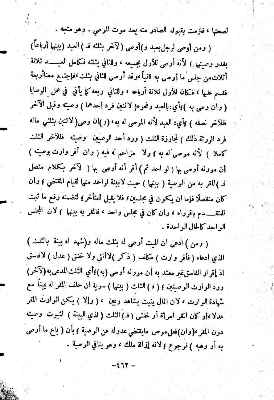 (وَمَنْ أَوْصَى لِرَجُلٍ بِعَبْدٍ وَ) أَوْصَى (لِآخَرَ بِثُلُثِهِ فَ) الْعَبْدُ (بَيْنَهُمَا أَرْبَاعًا) بِقَدْرِ وَصِيَّتِهِمَا؛ لِأَنَّهُ أَوْصَى لِلْأَوَّلِ بِجَمِيعِهِ، وَلِلثَّانِي بِثُلُثِهِ فَكَامِلُ الْعَبْدِ ثَلَاثَةُ أَثْلَاثٍ مِنْ جِنْسِ مَا أَوْصَى بِهِ ثَانِيًا، وَقَدْ أَوْصَى لِلثَّانِي بِثُلُثٍ، فَاجْتَمَعَ مَعَنَا أَرْبَعَةٌ فَقُسِّمَ عَلَيْهَا، فَكَانَ لِلْأَوَّلِ ثَلَاثَةُ أَرْبَاعِهِ، وَلِلثَّانِي رُبْعُهُ كَمَا يَأْتِي فِي عَمَلِ الْوَصَايَا (وَإِنْ وَصَّى بِهِ) أَيْ: بِالْعَبْدِ وَنَحْوِهِ (لِاثْنَيْنِ فَرَدَّ أَحَدُهُمَا) وَصِيَّتَهُ (وَقَبِلَ الْآخَرُ فَلِلْآخَرِ نِصْفُهُ) أَيْ: الْعَبْدِ لِأَنَّهُ الْمُوصَى لَهُ بِهِ (وَ) إنْ وَصَّى (لِاثْنَيْنِ بِثُلُثَيْ مَالِهِ فَرَدَّ الْوَرَثَةُ ذَلِكَ) لِمُجَاوَزَةِ الثُّلُثِ (وَرَدَّ أَحَدُ الْوَصِيَّيْنِ وَصِيَّتَهُ فَلِلْآخَرِ الثُّلُثُ كَامِلًا) لِأَنَّهُ مُوصَى لَهُ بِهِ؛ وَلَا مُزَاحِمَ لَهُ فِيهِ (وَإِنْ أَقَرَّ وَارِثٌ بِوَصِيَّتِهِ) أَنَّ مُوَرِّثَهُ أَوْصَى بِهَا (لِوَاحِدٍ ثُمَّ) أَقَرَّ أَنَّهُ أَوْصَى بِهَا (لِآخَرَ بِكَلَامٍ مُتَّصِلٍ فَ) الْمُقِرُّ بِهِ مِنْ الْوَصِيَّةِ (بَيْنَهُمَا) حَيْثُ لَا بَيِّنَةَ لِوَاحِدٍ مِنْهُمَا لِقِيَامِ الْمُقْتَضَى؛ وَإِنْ كَانَ مُنْفَصِلًا فَإِمَّا أَنْ يَكُونَ فِي مَجْلِسَيْنِ، فَلَا يُقْبَلُ لِلْمُتَأَخِّرِ؛ لِتَضَمُّنِهِ رَفْعَ مَا ثَبَتَ لِلْمُتَقَدِّمِ بِإِقْرَارِهِ، وَإِنْ كَانَ فِي مَجْلِسٍ وَاحِدٍ، فَالْمُقَرُّ بِهِ بَيْنَهُمَا؛ لِأَنَّ الْمَجْلِسَ الْوَاحِدَ كَالْحَالِ الْوَاحِدَةِ.