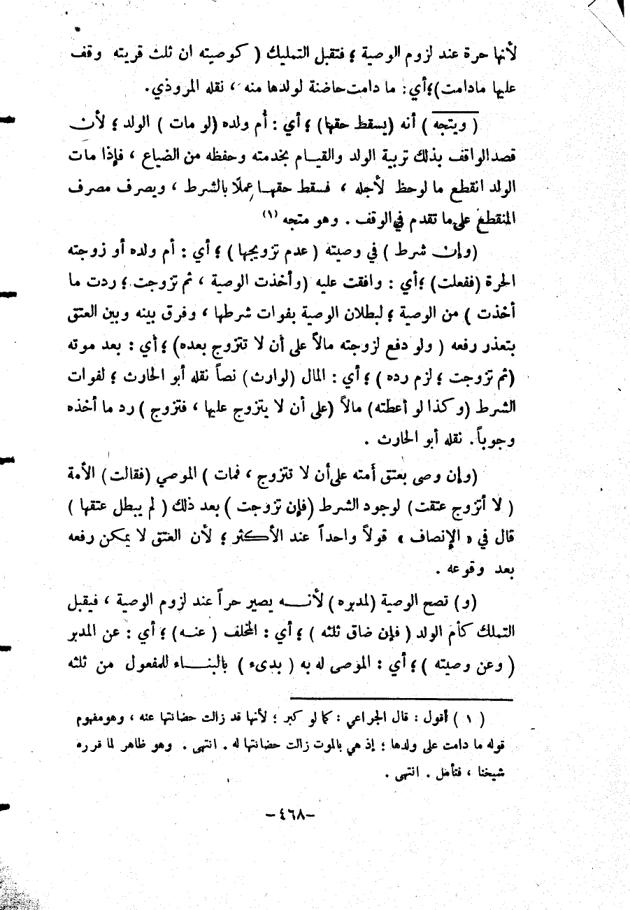 وَهُوَ مُتَّجِهٌ (وَإِنْ) (شَرَطَ) فِي وَصِيَّتِهِ (عَدَمَ تَزْوِيجِهَا) أَيْ: أُمِّ وَلَدِهِ أَوْ زَوْجَتِهِ الْحُرَّةِ (فَفَعَلَتْ) أَيْ: وَافَقَتْ عَلَيْهِ (وَأَخَذَتْ الْوَصِيَّةَ، ثُمَّ تَزَوَّجَتْ) (رَدَّتْ مَا أَخَذَتْ) مِنْ الْوَصِيَّةِ؛ لِبُطْلَانِ الْوَصِيَّةِ بِفَوَاتِ شَرْطِهَا، وَفُرِّقَ بَيْنَهُ وَبَيْنَ الْعِتْقِ بِتَعَذُّرِ رَفْعِهِ.